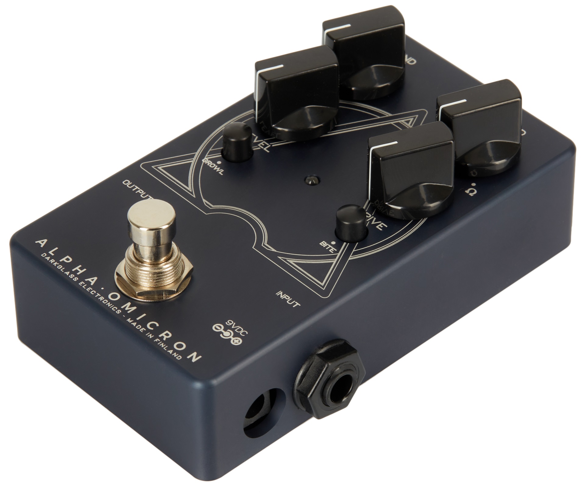 Basgitarový efekt Tento pedálový efekt od helsinskej butikovej spoločnosti Darkglass Electronics obsahuje dva rôzne typy skreslenia Alpha a Omega. Zatiaľ čo zvuk Alpha je definovanejší a pevnejší, Omega je jeho surovou a brutálnou alternatívou. Oba obvody je možné miešať dohromady pomocou ovládača Mod. Detailnejšie ovládanie tónu zabezpečuje ovládač Drive, Blend pre miešanie čistého a skresleného signálu a prepínač Bite pre zvýraznenie vyšších stredov (2,8 kHz) a Growl pre silnejšie basy.
