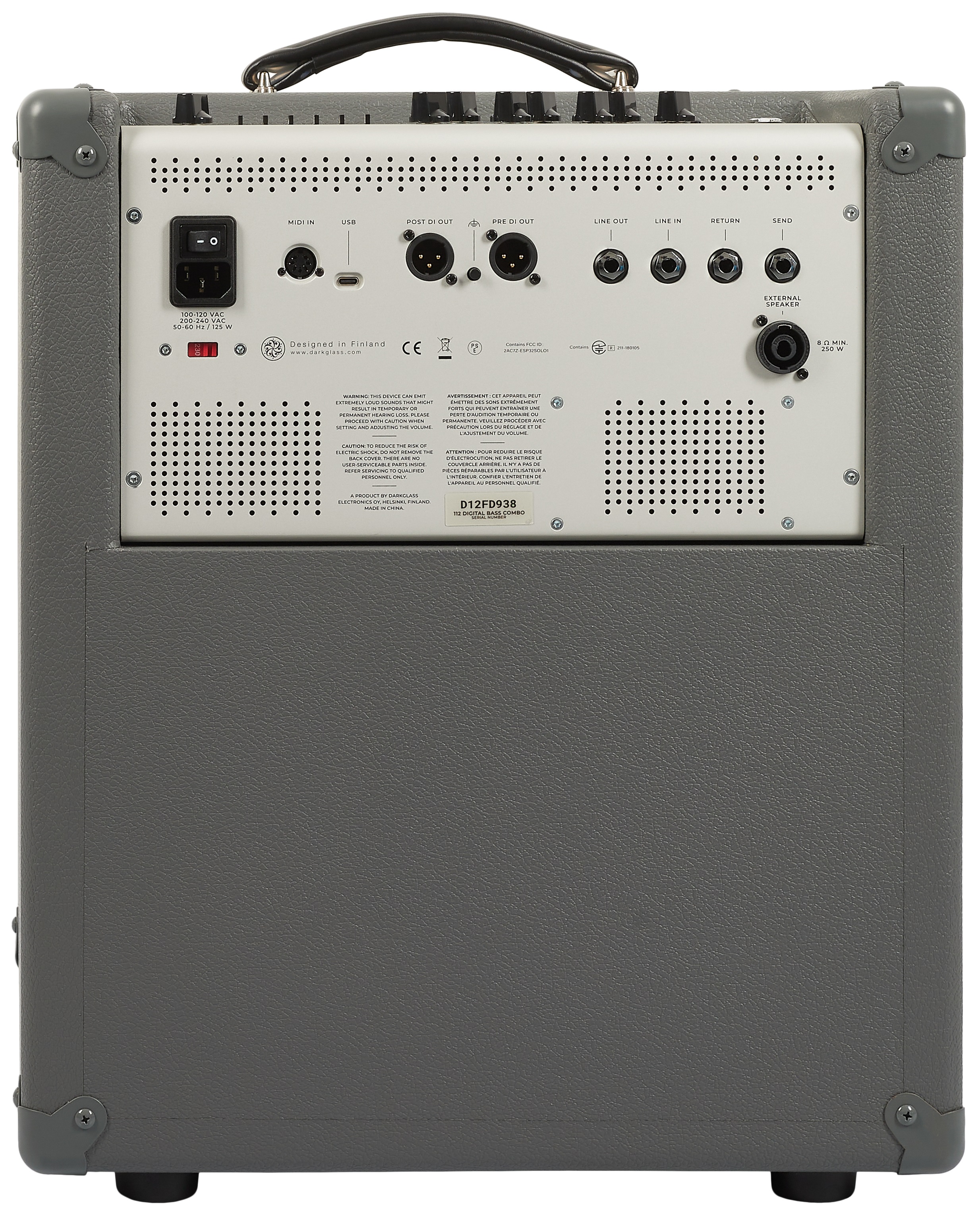Basgitarové modelingové kombo Darkglass DG210D je 1x 12“ basový kombo zosilňovač s pokročilým digitálnym spracovaním. Tento zosilňovač ponúka výkonné basové tóny, ktoré je možné nastaviť pomocou aplikácie Darkglass. Ponúka vynikajúce efekty, vrátane oktávy a kompresora, ktoré je možné umiestniť na začiatok alebo koniec signálového reťazca. Na prednom paneli sa nachádza ľahko čitateľný merač zníženia zosilnenia a algoritmy možno ľahko meniť pomocou technológie Bluetooth. Používatelia môžu uložiť až päť pred