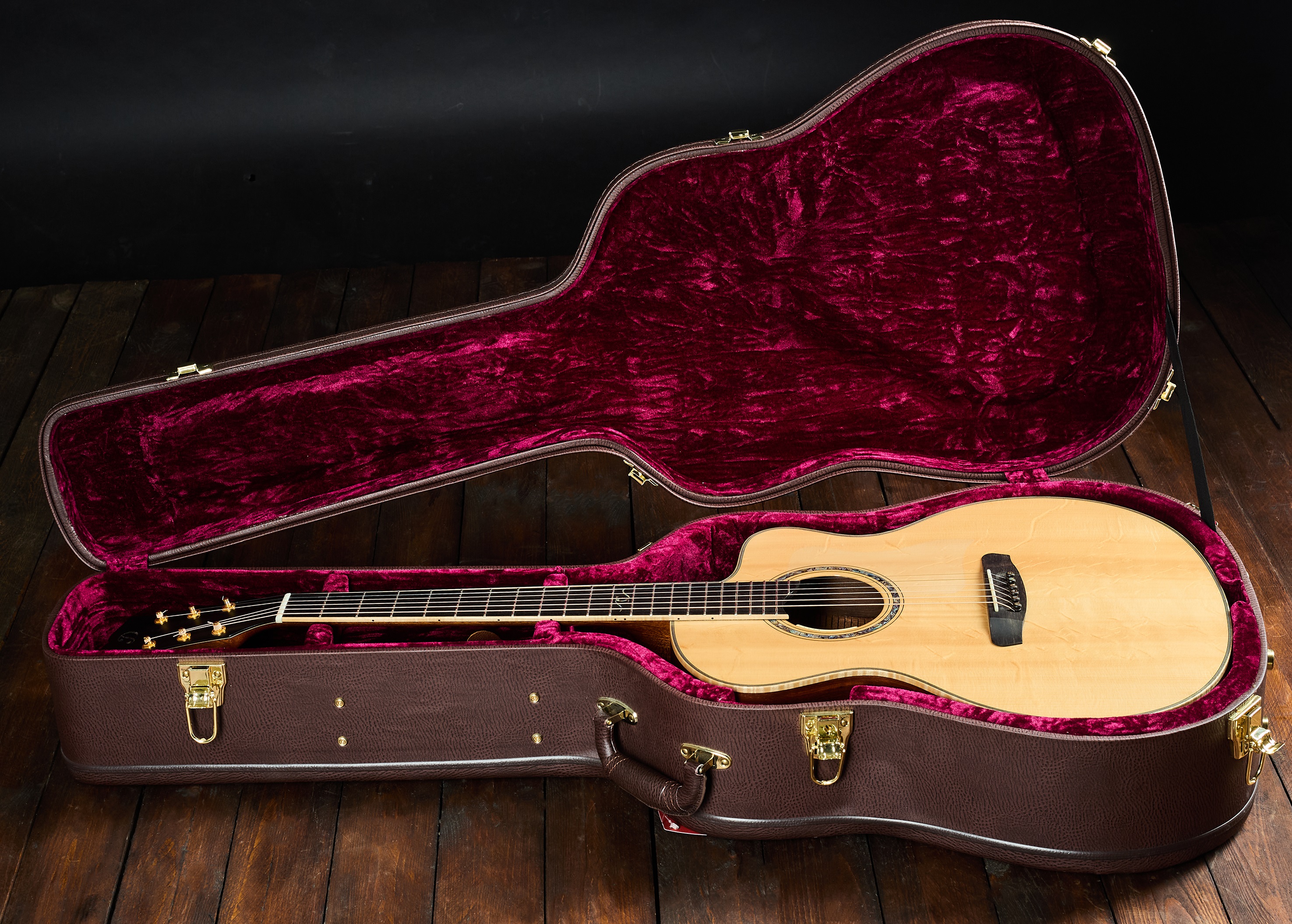 Elektroakustická gitara Séria Master od slovenskej značky Dowina, ručne vyrábaný celomasívny nástroj. Gitara z roku 2018 je v perfektnom stave, málo hraná. Tvar tela Grand Auditorium. Solídny výkon v nízkych a stredných frekvenciách, výborná na prstovú techniku a vybrnkávanie, skrátka univerzálny nástroj na všetky príležitosti. Výrez napomáha ľahkému prístupu do vyšších polôh. Smreková vrchná doska s hmatníkom s medvedím pazúrom. Zadná doska je vyrobená z 2 kusov kokosového dreva (3 kusy sú bežné vzhľadom n