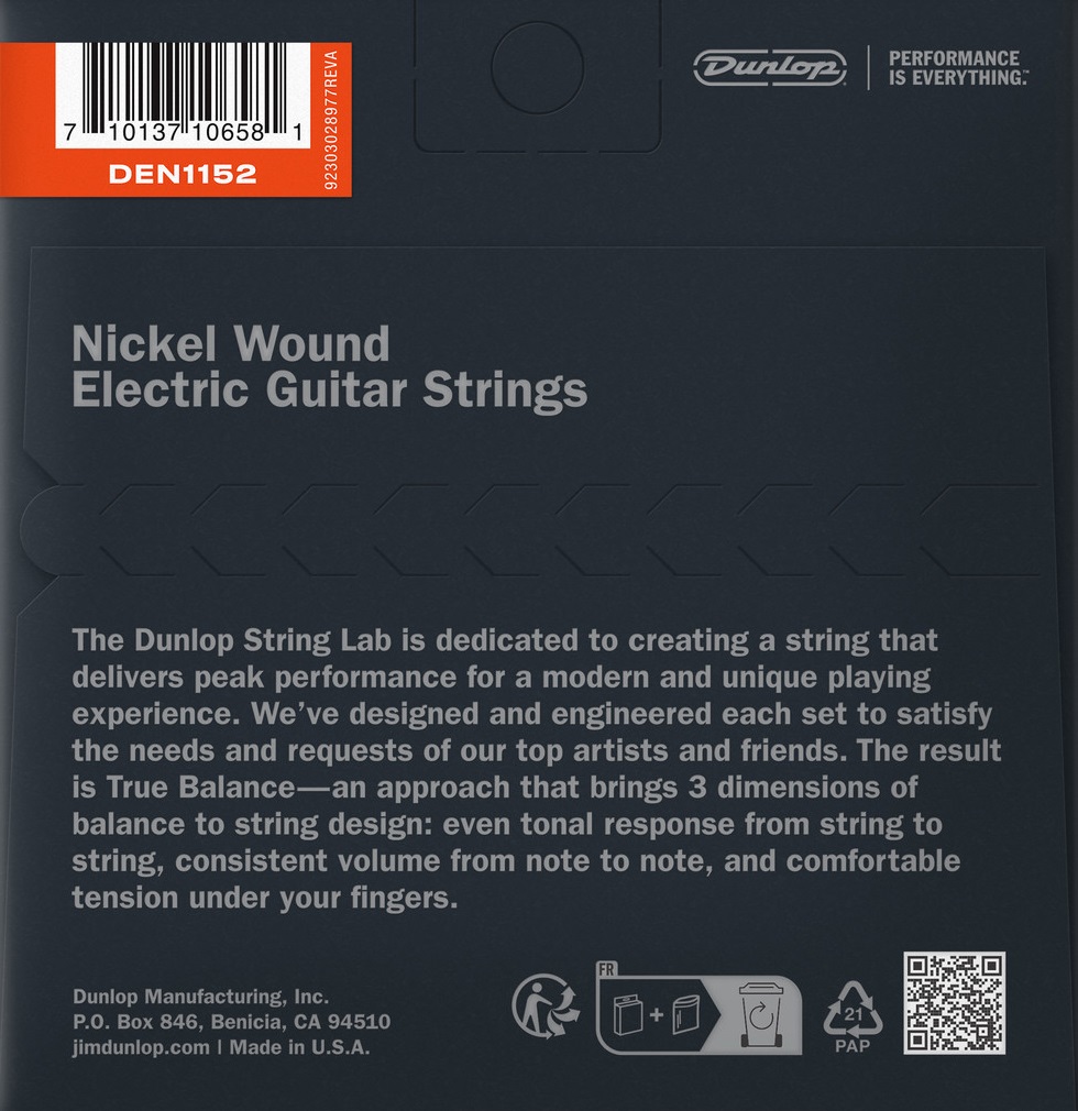 Struny na elektrickú gitaru Struny na elektrickú gitaru Dunlop Nickel Wound sa vyrábajú v Benicia v Kalifornii, kde majú skvelý recept na precízne vyrobené struny z materiálov najvyššej kvality. Sú navinuté niklovanou oceľou a ich zvuk sa vyznačuje frekvenčne vyváženým tónom, ktorý sa dá použiť takmer v každom hudobnom žánri. Nech hráte rock, pop, metal, blues alebo country, tieto struny vám zaručene vydržia. Vynikajú tiež pevnosťou, flexibilitou a pohodlným hraním. Struny