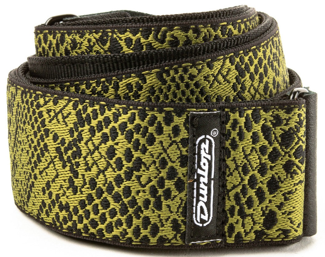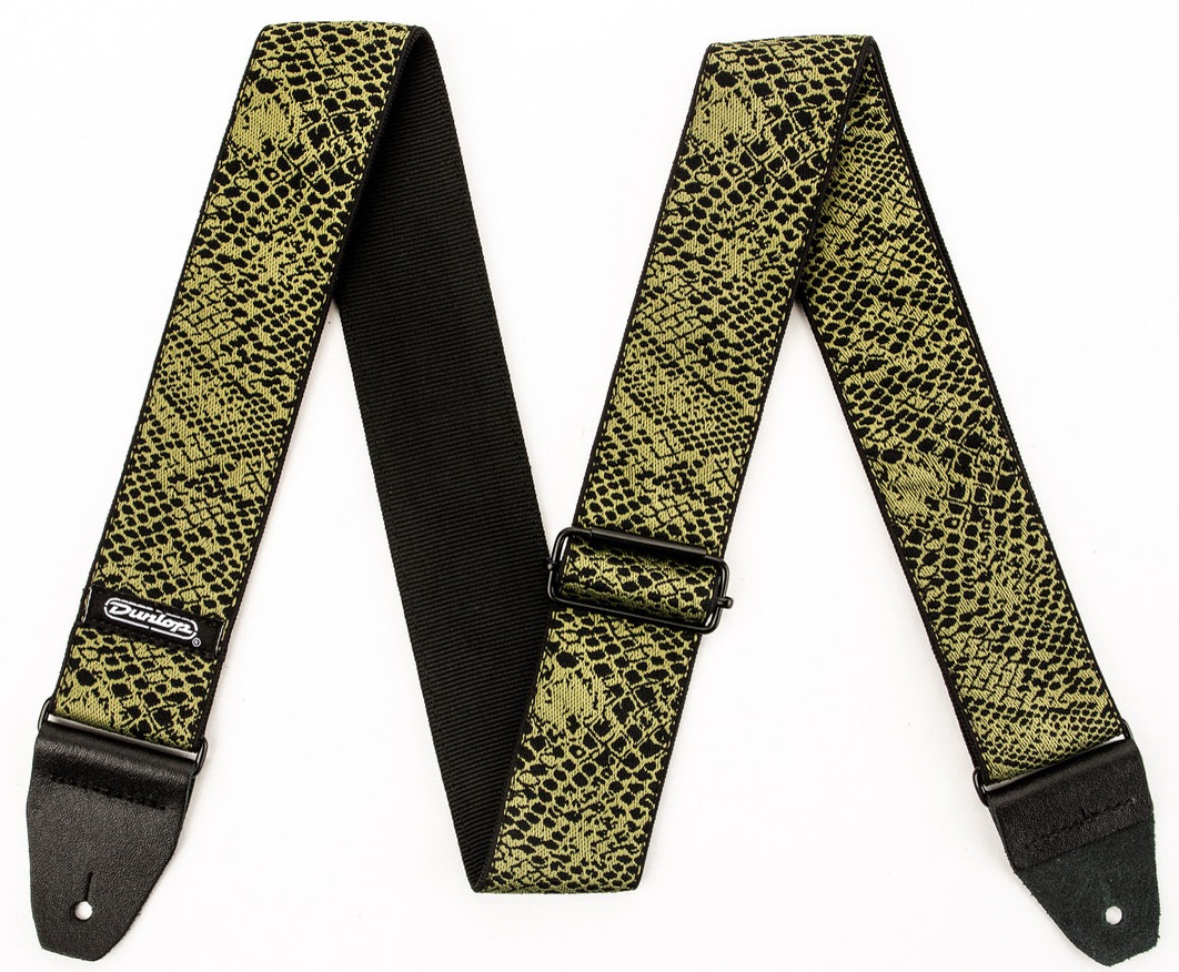 Gitarový popruh Žakárové remienky od americkej spoločnosti Dunlop sú vyrobené z kvalitnej žakárovej tkaniny s farebným vzorom inšpirovaným zvieratami. Sú navrhnuté priamo v štúdiách spoločnosti Dunlop a vyrábajú sa v Spojených štátoch. Každý z popruhov je potom testovaný na zaťaženie až do 100 kilogramov, aby sa zabezpečila spoľahlivosť a dlhá životnosť. Na zaistenie maximálnej bezpečnosti vášho náradia je popruh vybavený koženými koncovkami, ktoré zabezpečujú pevné a spoľa