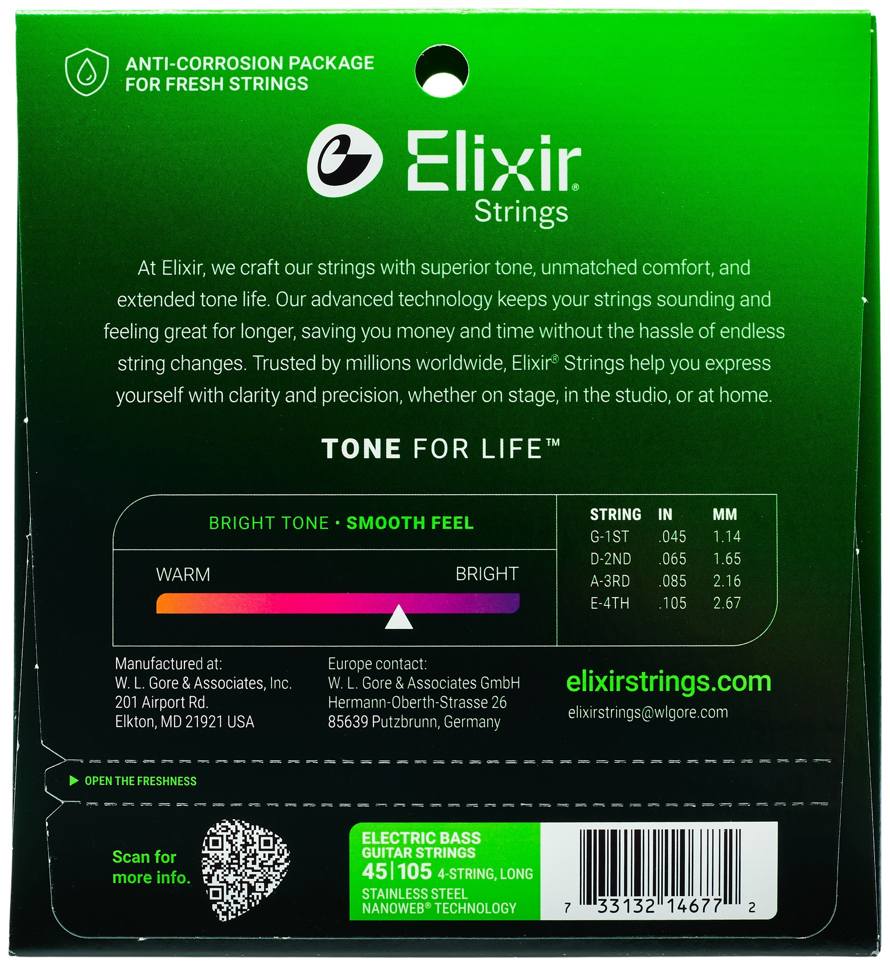 Struny na basgitaru Struny Elixir sú známe svojou extrémne dlhou životnosťou, ktorej je veľmi ťažké konkurovať. Vďaka špeciálnemu poťahu sú odolné voči korózii, vlhkosti, špine a potu, takže si dlho zachovávajú čistý a prenikavý tón. V tejto súprave nájdete struny vinuté z nehrdzavejúcej ocele, vďaka čomu majú zvonivejší tón s prieraznými basmi. Sú potiahnuté ochrannou vrstvou Nanoweb, vďaka ktorej sú mimoriadne odolné a hladšie ako bežné struny, čo znižuje hluk vznikajúci