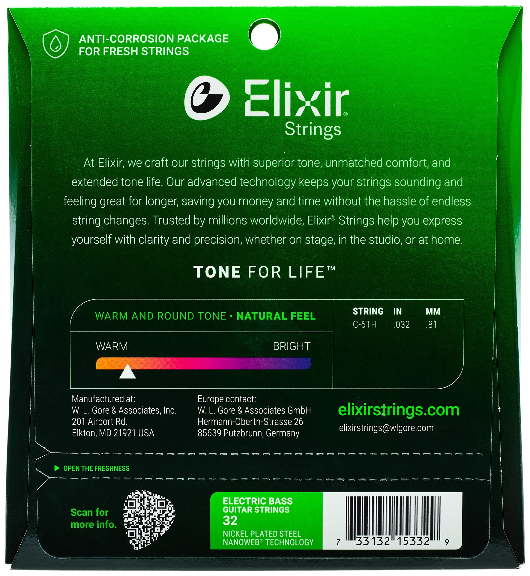 Struny pre basovú gitaru Struny od legendárnej spoločnosti Elixir, ktorá je známa výrobou strún s extrémne dlhou životnosťou. Oceľové jadro je potiahnuté poniklovanou oceľou, ktorá strunám dodáva teplý, zaoblený tón. Vďaka nanovláknovému poťahu je veľmi odolná a vydrží oveľa dlhšie ako bežná struna.
