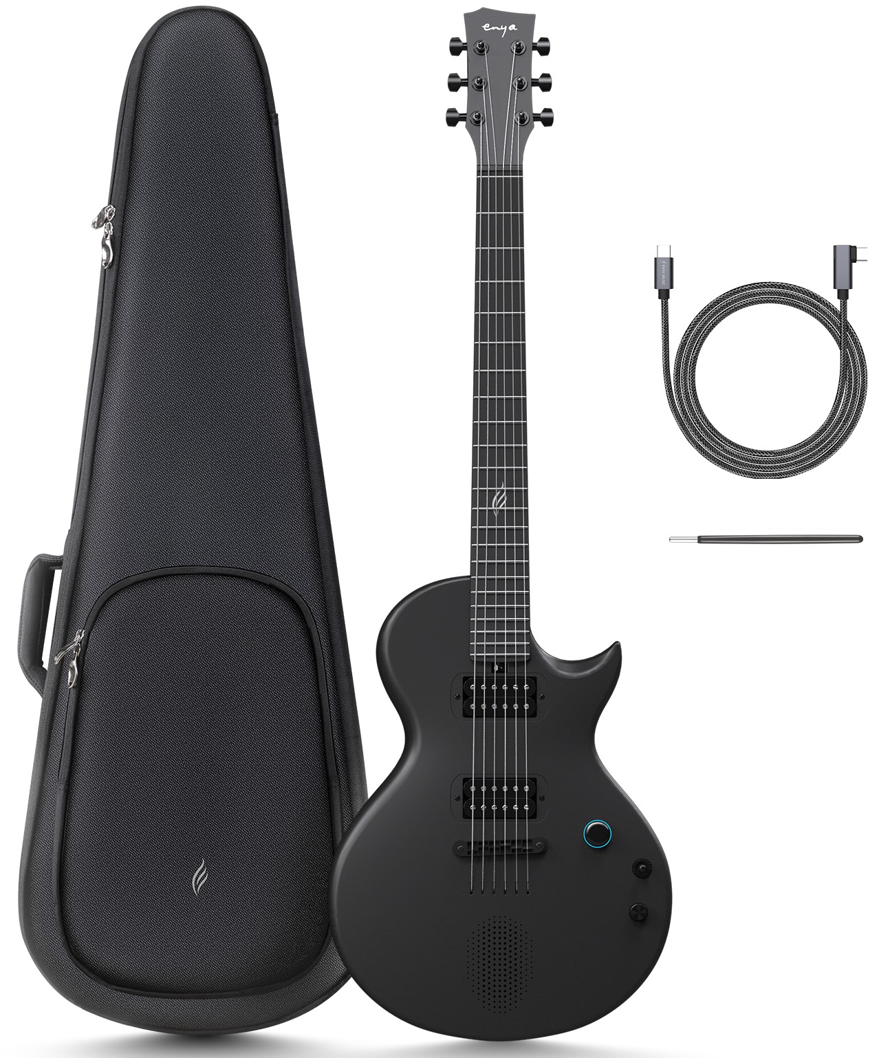 Elektrická gitara So značkou Enya prichádzajú na hudobný trh moderné multifunkčné nástroje so sviežim dizajnom, prístupom a funkciami, ktoré sa v tradičných akustických a elektrických gitarách nenachádzajú. Enya Nova Go Sonic Black je inteligentná elektrická gitara v dizajne LP s jedným výrezom, konštrukciou z uhlíkového kompozitu, vstavaným 10-wattovým reproduktorom s pripojením Bluetooth, digitálnym systé