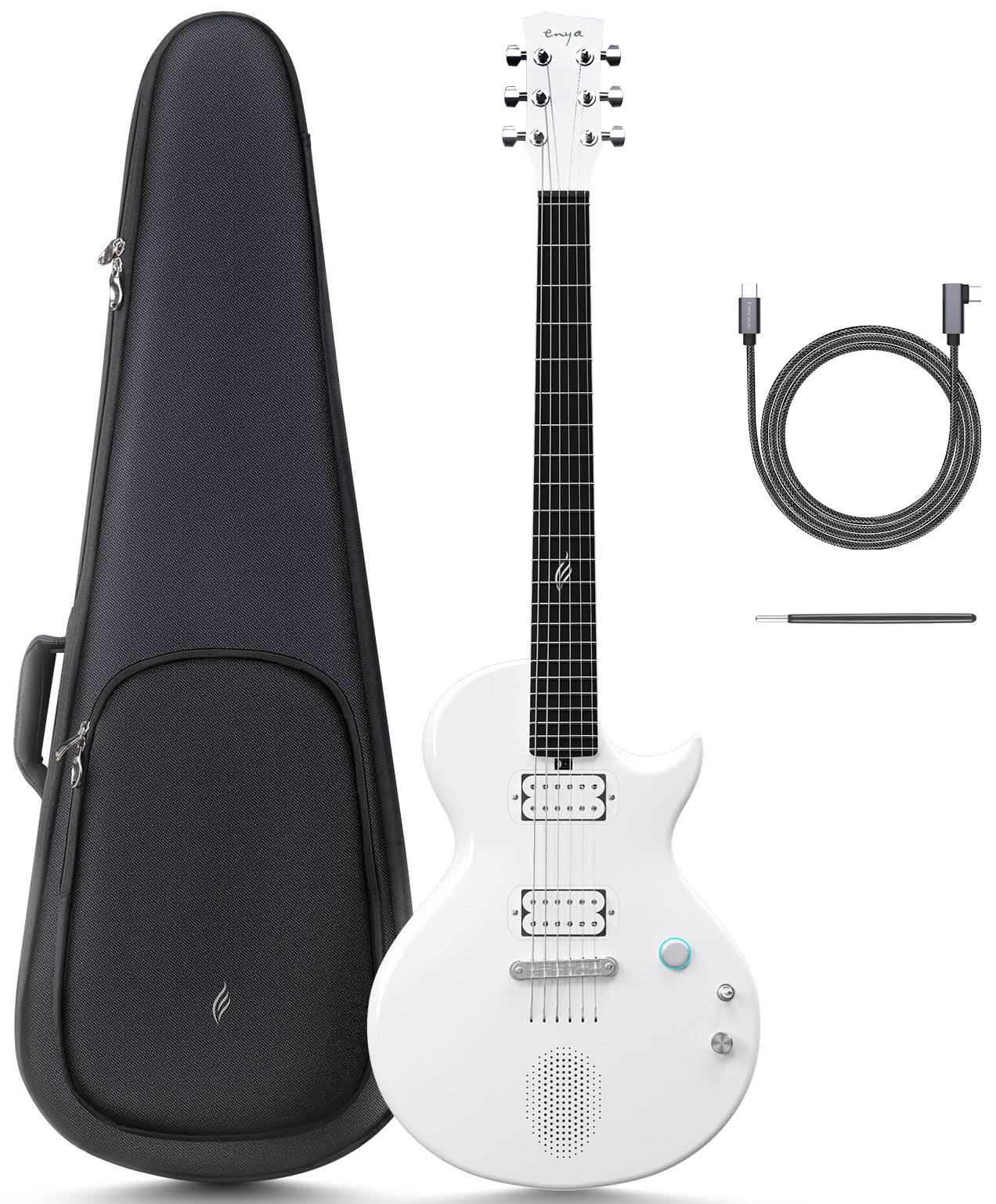 Elektrická gitara So značkou Enya prichádzajú na hudobný trh moderné multifunkčné nástroje so sviežim dizajnom, prístupom a funkciami, ktoré sa v tradičných akustických a elektrických gitarách nenachádzajú. Enya Nova Go Sonic White je inteligentná elektrická gitara v dizajne LP s jedným výrezom, konštrukciou z uhlíkového kompozitu, vstavaným 10-wattovým reproduktorom s pripojením Bluetooth, digitálnym systé