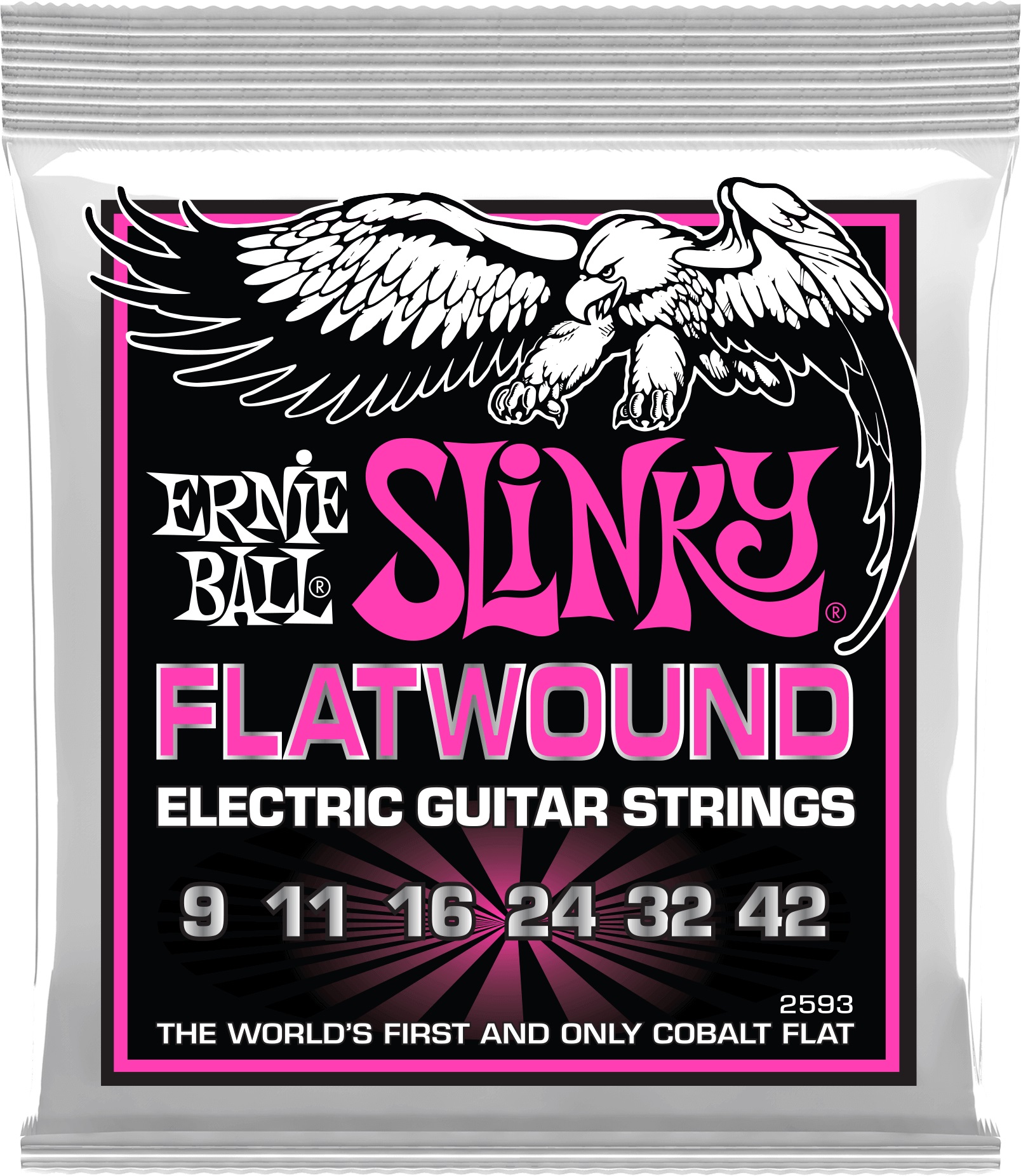 Struny na elektrickú gitaru Struny Ernie Ball Slinky Flatwound pre elektrickú gitaru ponúkajú tradičný zvuk svetoznámej série Slinky, ale v prevedení flatwound, ktoré poskytuje krásne hladký povrch, minimálny šum pri prechádzaní prstami po strunách a výnimočne pohodlný zážitok z hrania. Struny sú navinuté patentovanou zliatinou kobaltu, ktorá zdôrazňuje vysoké frekvencie a dodáva strunám bohatý, plný zvuk. Hrúbka strún: .009/.011/.016/.024/.032/.042