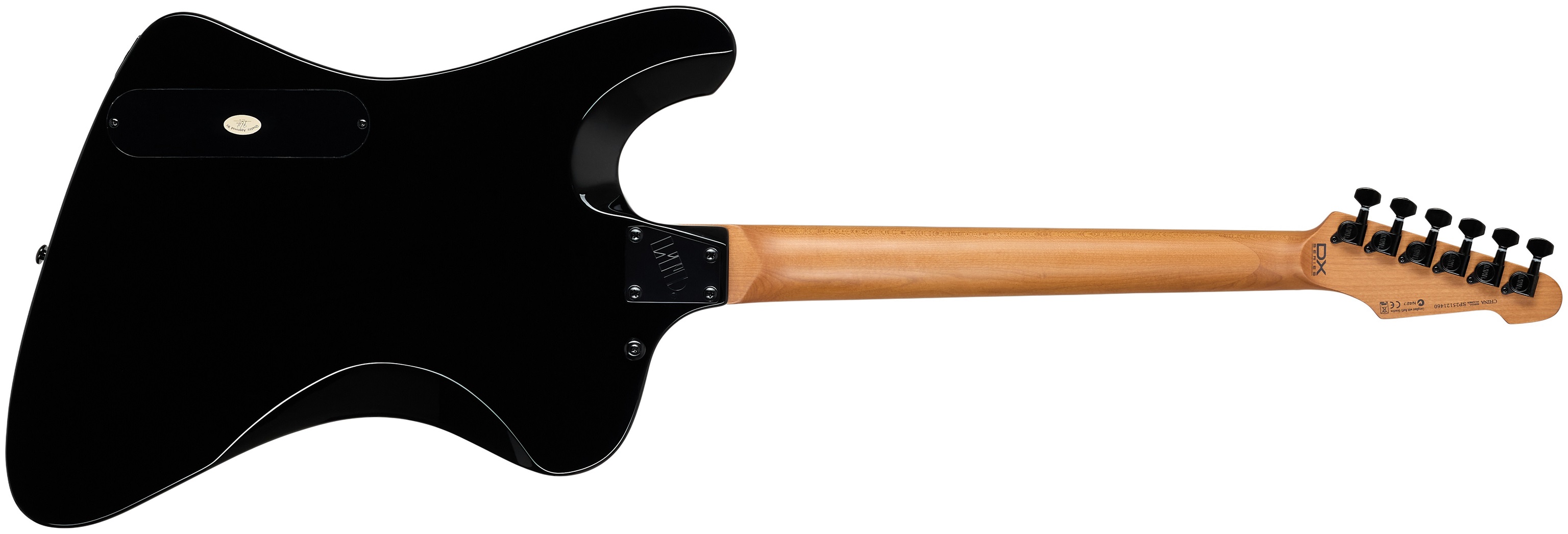 Elektrická gitara PHX-200DX Black Burst je cenovo dostupná elektrická gitara od ESP LTD so zaujímavým dizajnom telesa, ktorý určite osloví širokú škálu hráčov, vrátane mladých začiatočníkov. Teleso z topoľa je zdobené nápadnou dyhou z plamenného javora a povrchovou úpravou Black Burst. Prišraubovaný úzky krk je vyrobený z troch kusov pražovaného javora a má palisandrový hmatník s dvadsiatimi dvoma Extra Jumbo pražcami. Posunuté polohové bodky uľahčujú orien