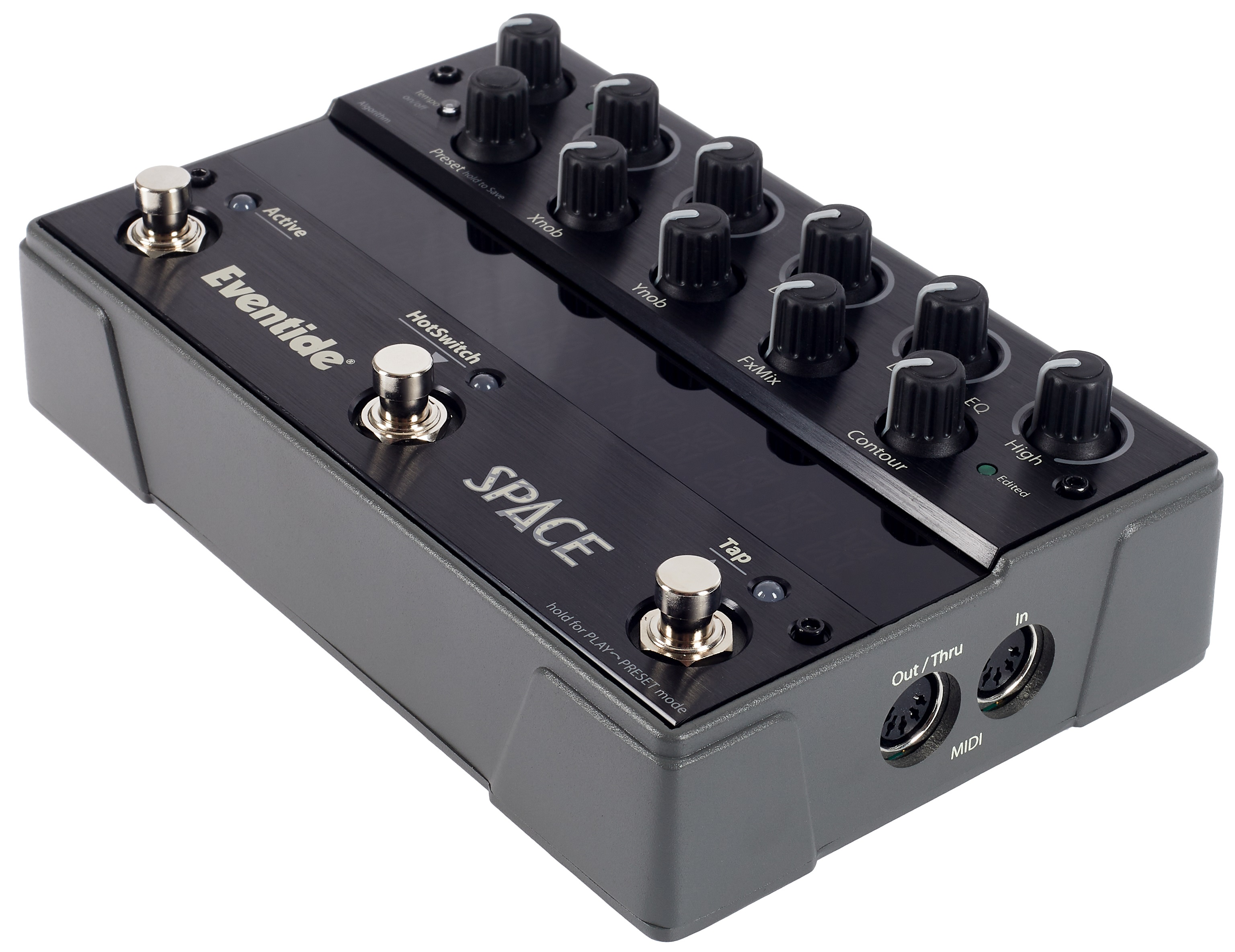 Gitarový efekt Eventide Space je jeden z najlepších a najvšestrannejších gitarových reverbov, aké môžete v súčasnosti nájsť na trhu. Tento stompbox vám ponúkne možnosti komplexných rackových zariadení, pričom ponúka užívateľsky prívetivé ovládanie a oveľa väčšiu praktickosť. Je kompatibilný s gitarou aj basgitarou. Space je efekt, ktorý v sebe ukrýva tie najlepšie reverby, aké kedy spoločnosť Eventide vytvorila. Celkovo je k dispozícii 12 typov mono alebo stereo efektov – Room, Plate, Spring, Hall, Reverse,