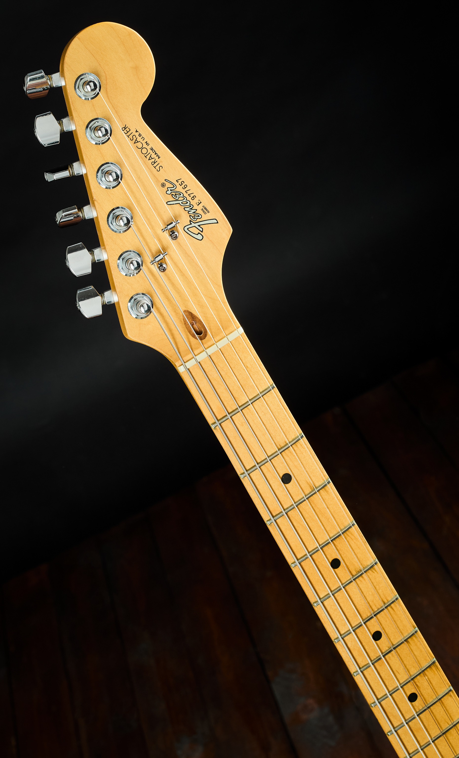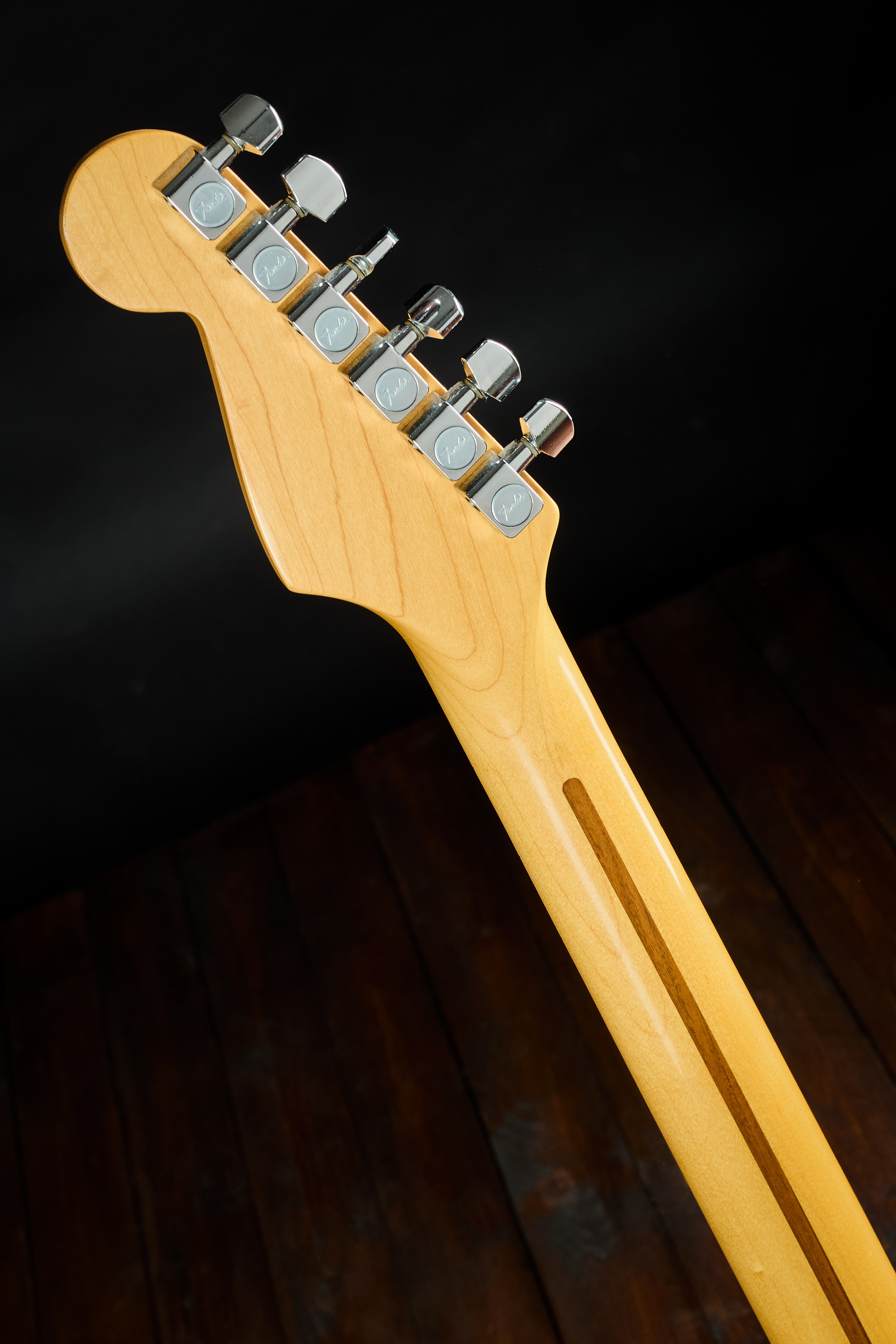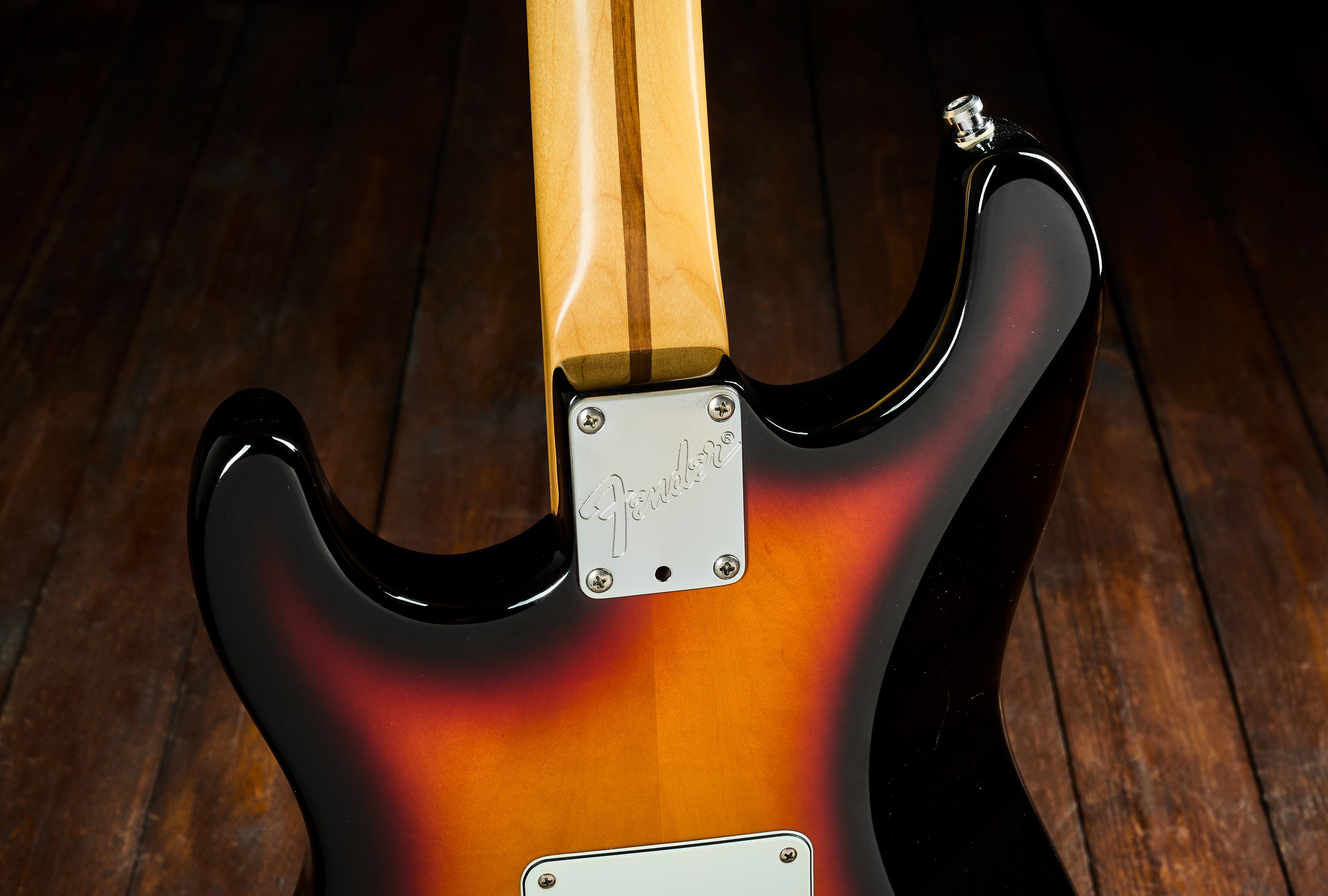 Elektrická gitara Stratocaster z počiatkov výroby v súčasnej kalifornskej továrni spoločnosti Fender v roku 1989. Teraz je to zberateľský nástroj. Vynikajúci nástroj s jemnými modernými prvkami, ako je päťpolohový prepínač, masívne klávesy a tremolo uchytené na dvoch veľkých skrutkách (pivotoch) alebo holubičí chvost s nastavením hlavy. Telo je jelšové, lakované v trojfarebnom sunburste; krk je javorový. Všetko je pôvodné, vo výbornom stave. Nástroj sa dodáva s originálnym plastovým kufrom Fender. Predáva s