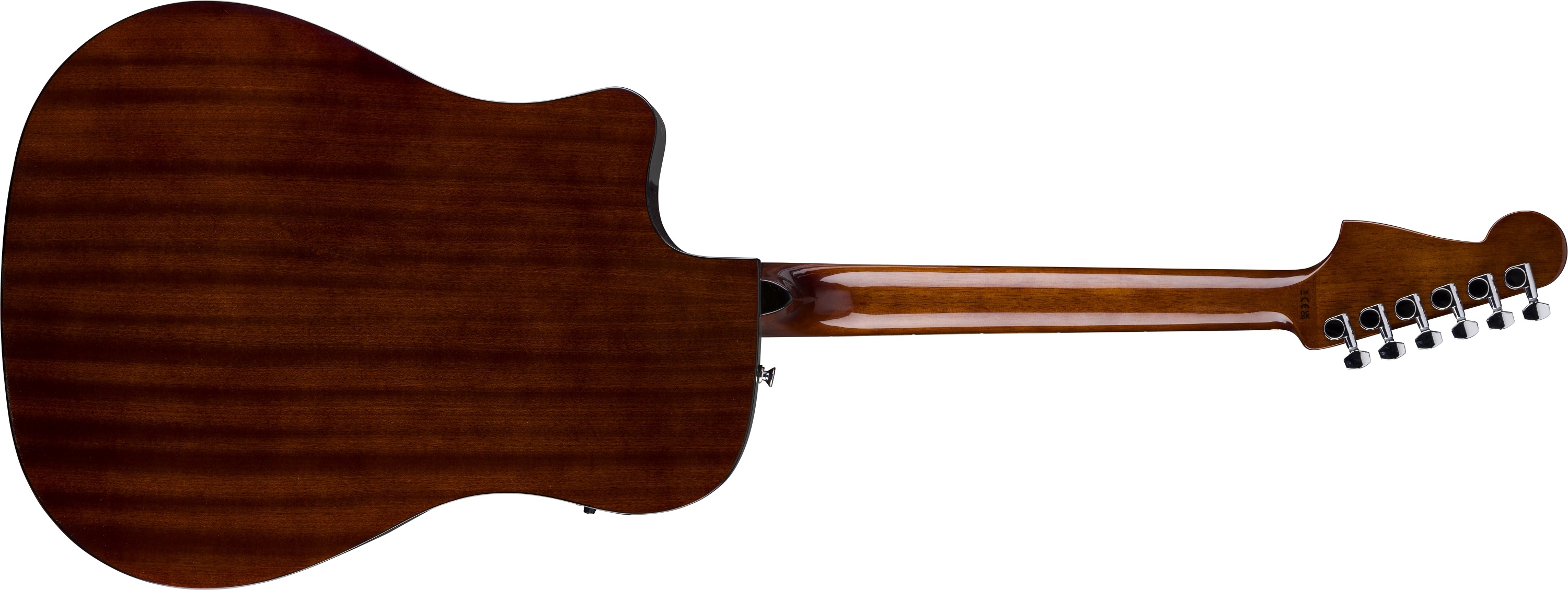 Elektroakustická gitara Akustické gitary Fender Redondo California Series kombinujú dizajnové prvky a vlastnosti akustických gitár s nadčasovými dizajnovými prvkami elektrických gitár Fender v jednom tele. California Standard Redondo CE 3TS je cenovo dostupná elektroakustická gitara s telom v tvare obľúbeného „westernového“ dreadnoughtu. Predná doska gitary je vyrobená z laminovaného smreka, zatiaľ čo zadná doska a luby sú z laminovaného sa