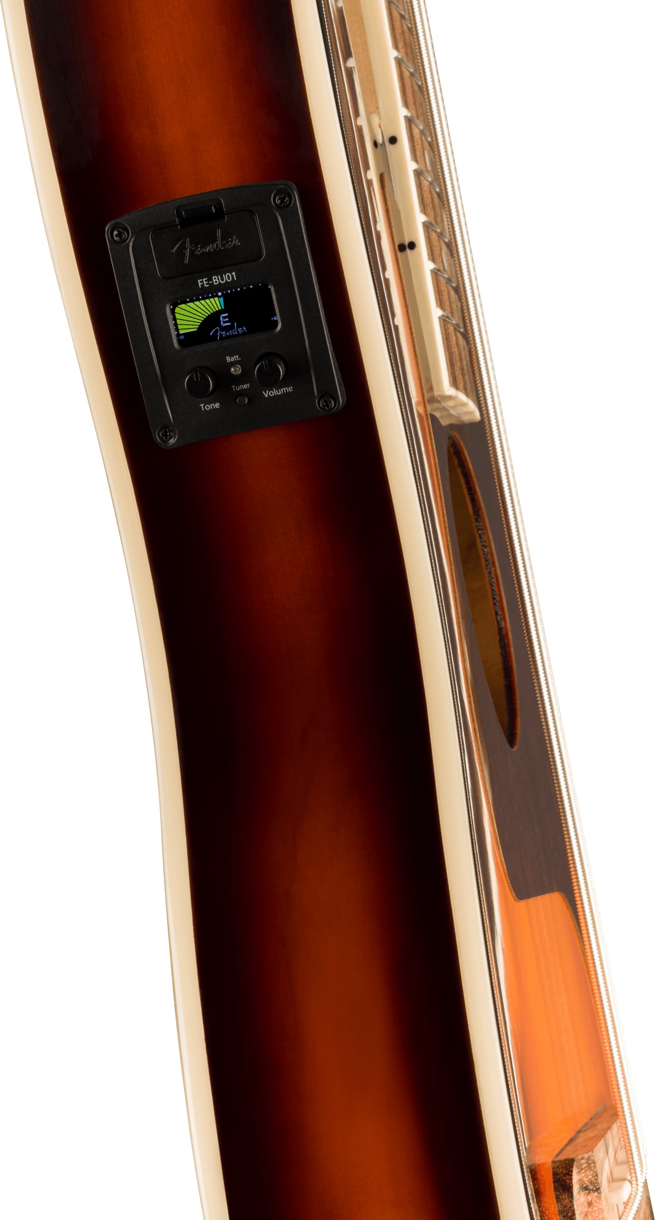 Basové ukulele Fullerton Precision Bass Uke kombinuje kompaktný tvar ukulele s dizajnom tela basgitary Fender Precision. Samotné telo nástroja je vyrobené z laminovanej smrekovej prednej dosky a masívnej zadnej dosky a lubov z okoumé. K javorovému krku s pohodlným „C“ profilom je prilepený orechový hmatník osadený osemnástimi pražcami. Struny držia chrómové liate mechaniky a orechový hmatník. Štýlové spracovanie podčiarkuje signovaný pickguard Precision Bass v imitácii korytnačiny. O ozvučenie sa stará pred