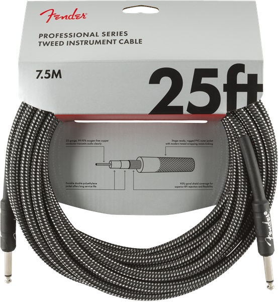 Nástrojový kábel Nástrojový kábel Fender Professional Series je vyrobený z kvalitných komponentov, ktoré zachovávajú tón, eliminujú straty signálu a zaručujú dlhú životnosť kábla. Priečne špirálové tienenie a kvalitný materiál Tweed s fyzikálnou pamäťou zabraňujú krúteniu a zalomeniu kábla, ktoré často znepríjemňujú život hudobníkom. Konektory kábla sú poniklované.
