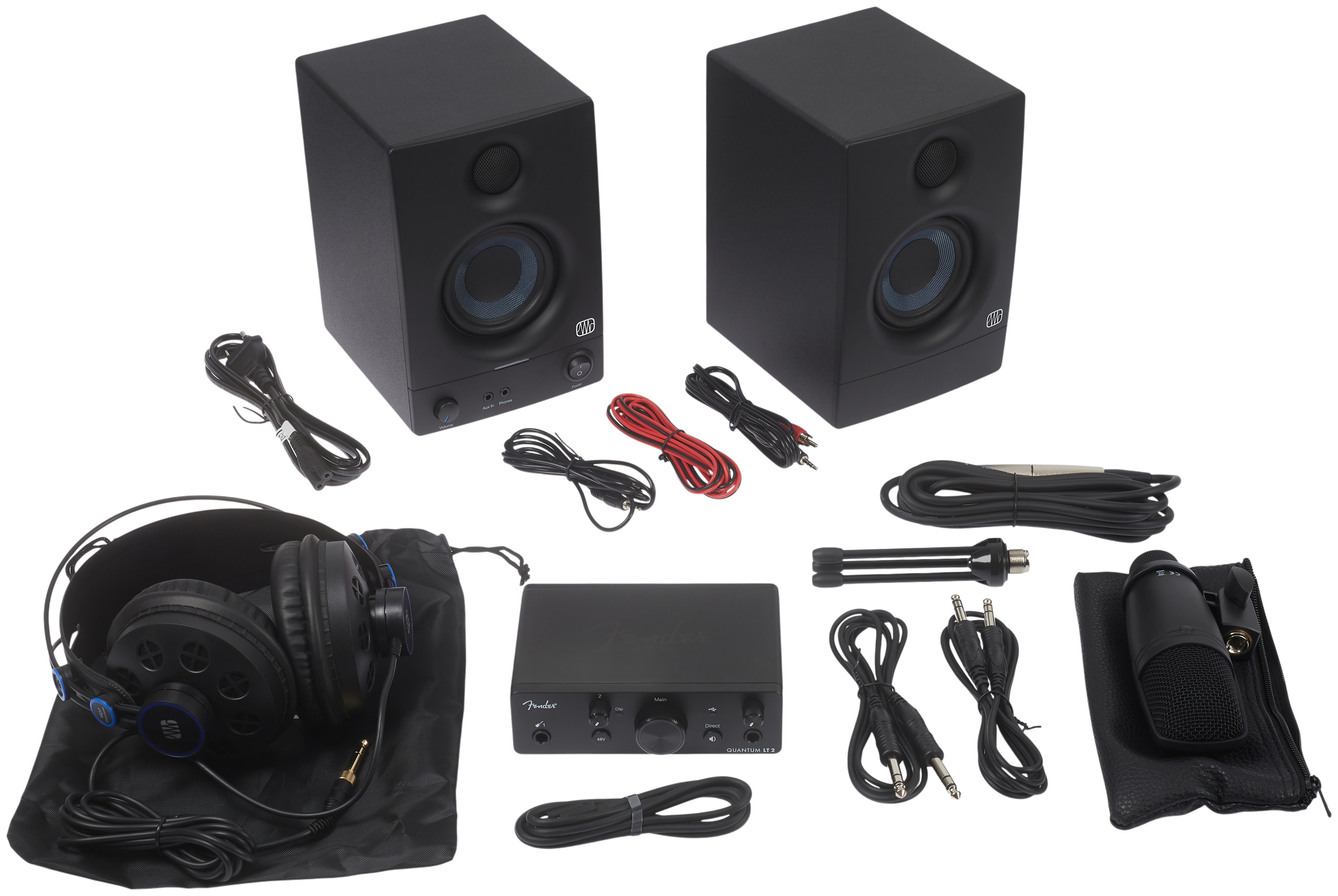 Balíček na domáce nahrávanie Ak si tento produkt zakúpite do 31. 5. 2026, získate zadarmo kompletný balík Fender Amp & FX pack. Na stiahnutie navštívte webové stránky výrobcu. Fender Quantum Complete je komplexné riešenie pre domáce aj mobilné nahrávanie, ktoré ponúka plnohodnotné štúdio v jednom balení. Táto starostlivo zostavená sada je určená pre začínajúcich producentov, hudobníkov a tvorcov obsahu, ktorí chcú okamžite pracovať s profesionálnou kvalitou zvuku bez nu