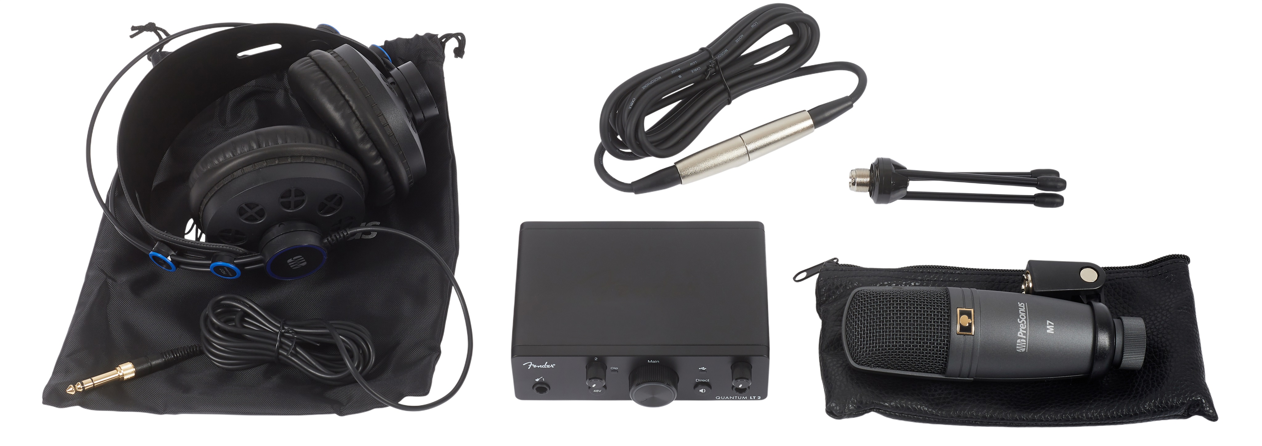 Balíček na domáce nahrávanie Ak si tento produkt zakúpite do 31. 5. 2026, získate zadarmo kompletný balík Fender Amp & FX pack. Na stiahnutie navštívte webové stránky výrobcu. Fender Quantum Creator je kompletný štartovací balík pre každého, kto chce začať nahrávať, produkovať a vydávať hudbu v profesionálnej kvalite bez zložitého zostavovania štúdia. Tento praktický set kombinuje špičkový hardvér a výkonný softvér do jedného prenosného riešenia, ktoré je ideálne pre do