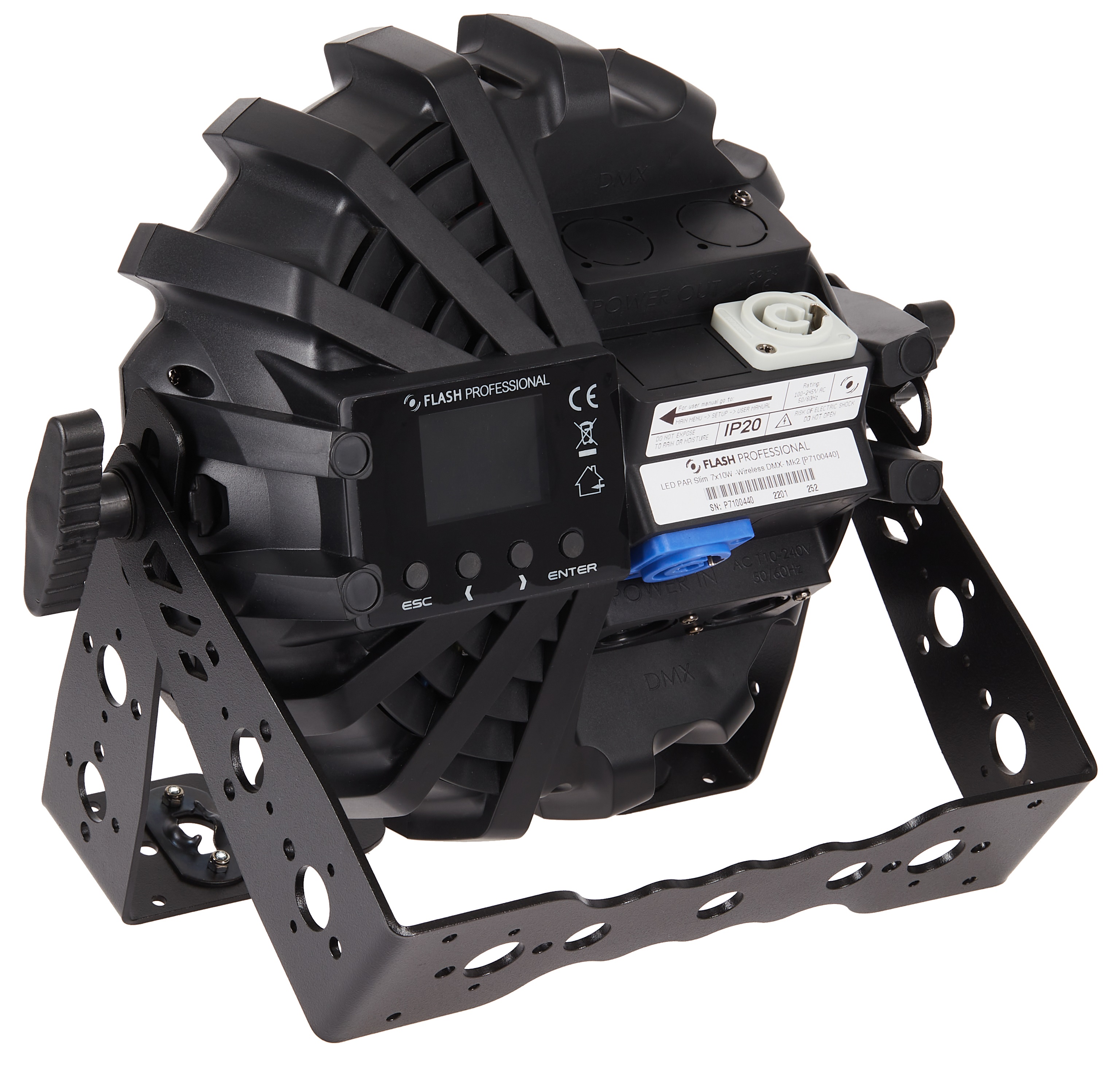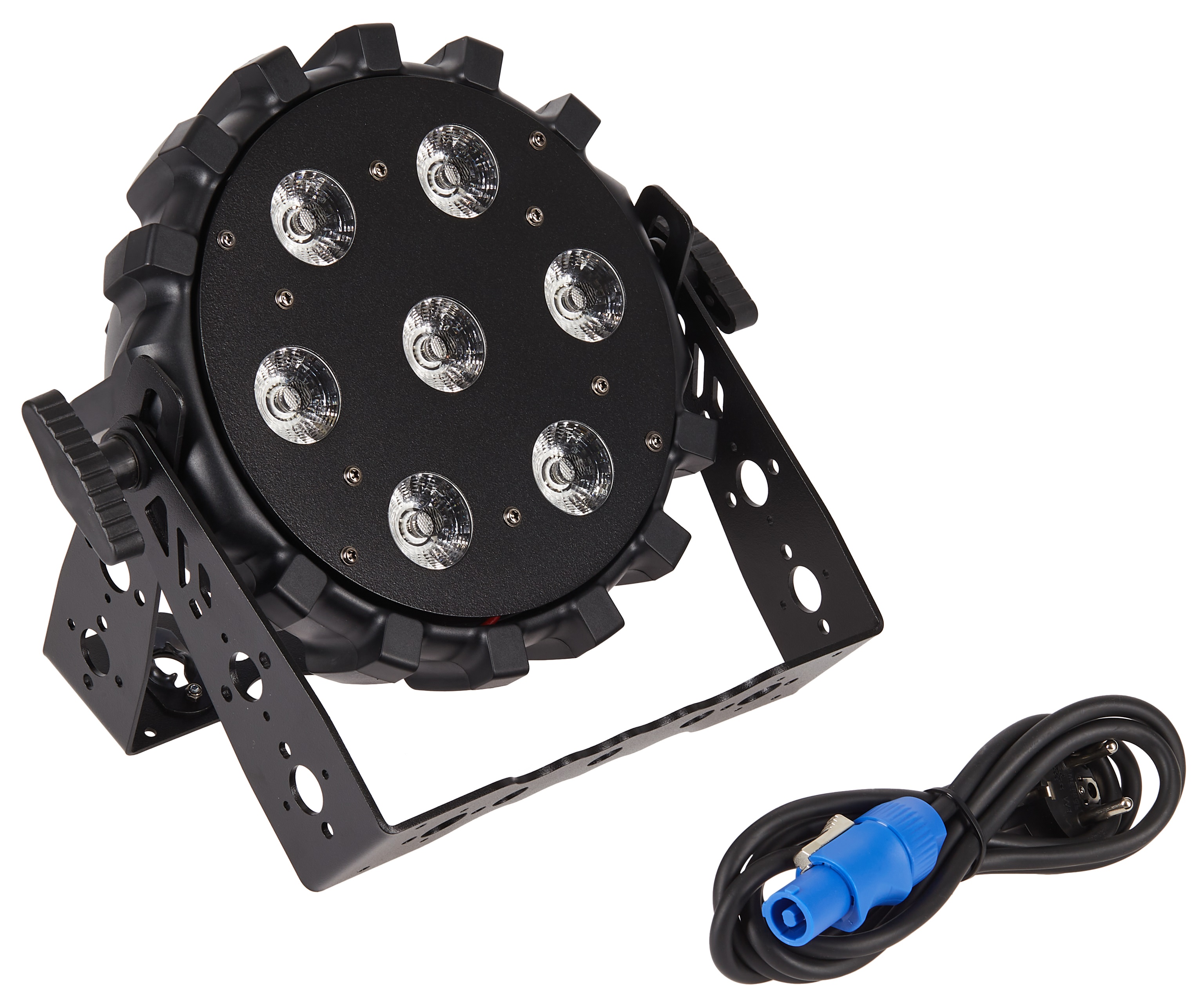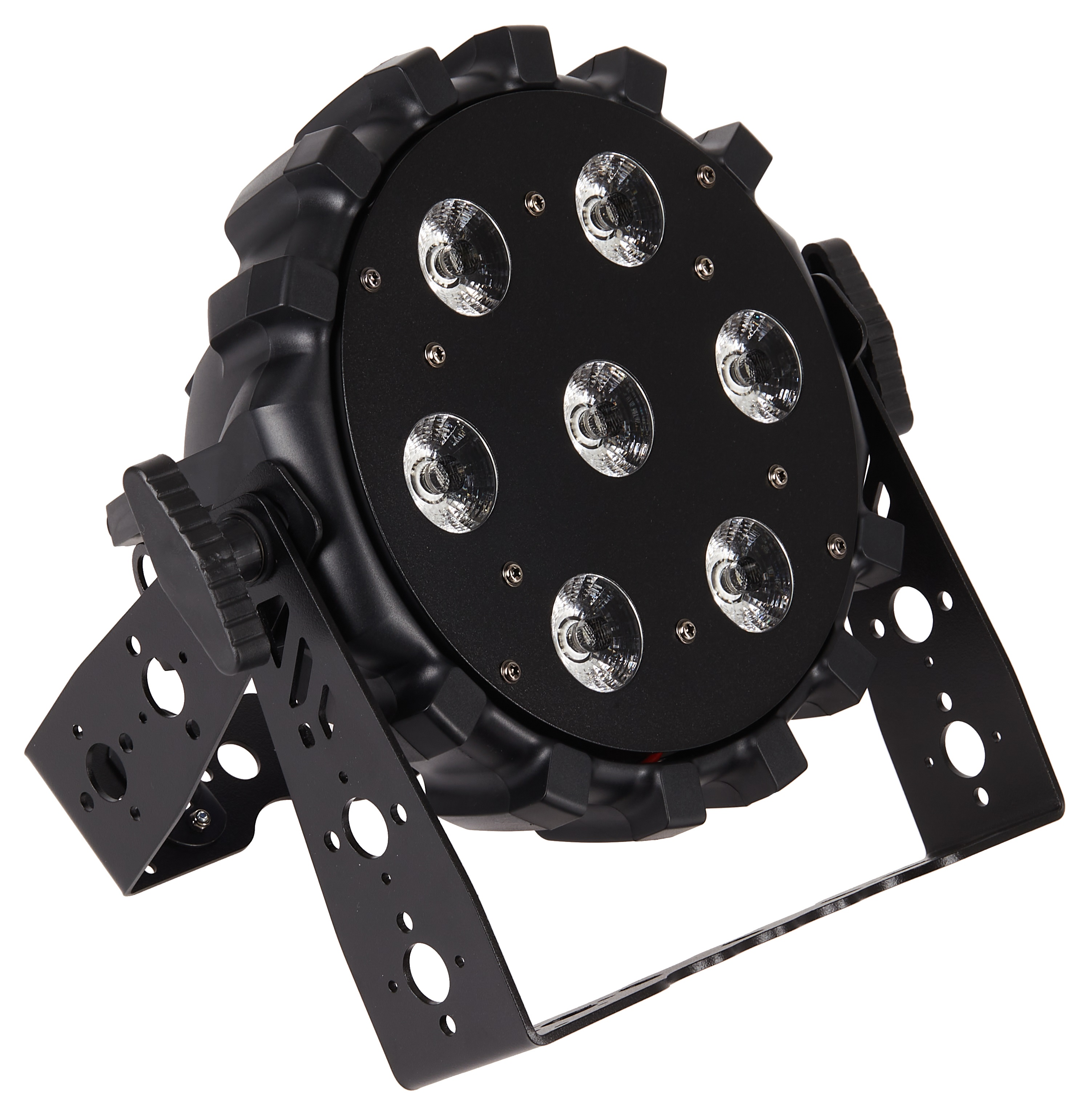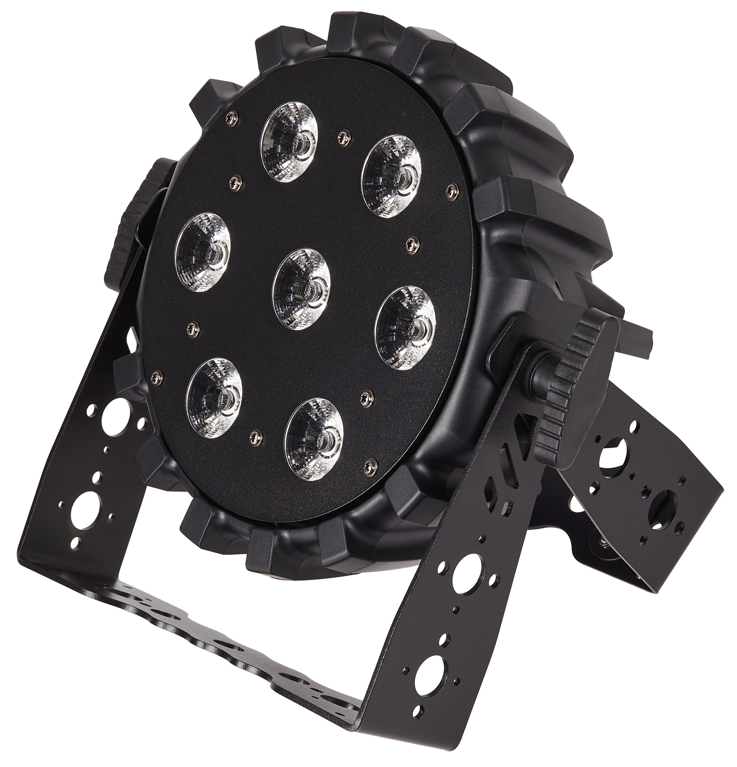 LED PAR reflektor Tento reflektor LED PAR od spoločnosti Flash je ideálny na osvetlenie menších koncertov, tanečných vystúpení a iných podobných podujatí. Vďaka jeho kompaktným rozmerom a nízkej hmotnosti (270 x 110 x 255 mm, 2,2 kg) ho ocenia aj cestujúci osvetľovači a dídžeji, ktorí hľadajú svietidlo na mobilnú zábavu. Jeho svetelným zdrojom je sedem 10W RGBW (4v1) LED diód, ktoré poskytujú širokú paletu farieb na vytváranie rôznych farieb. K dispozícii je aj stmievač sve