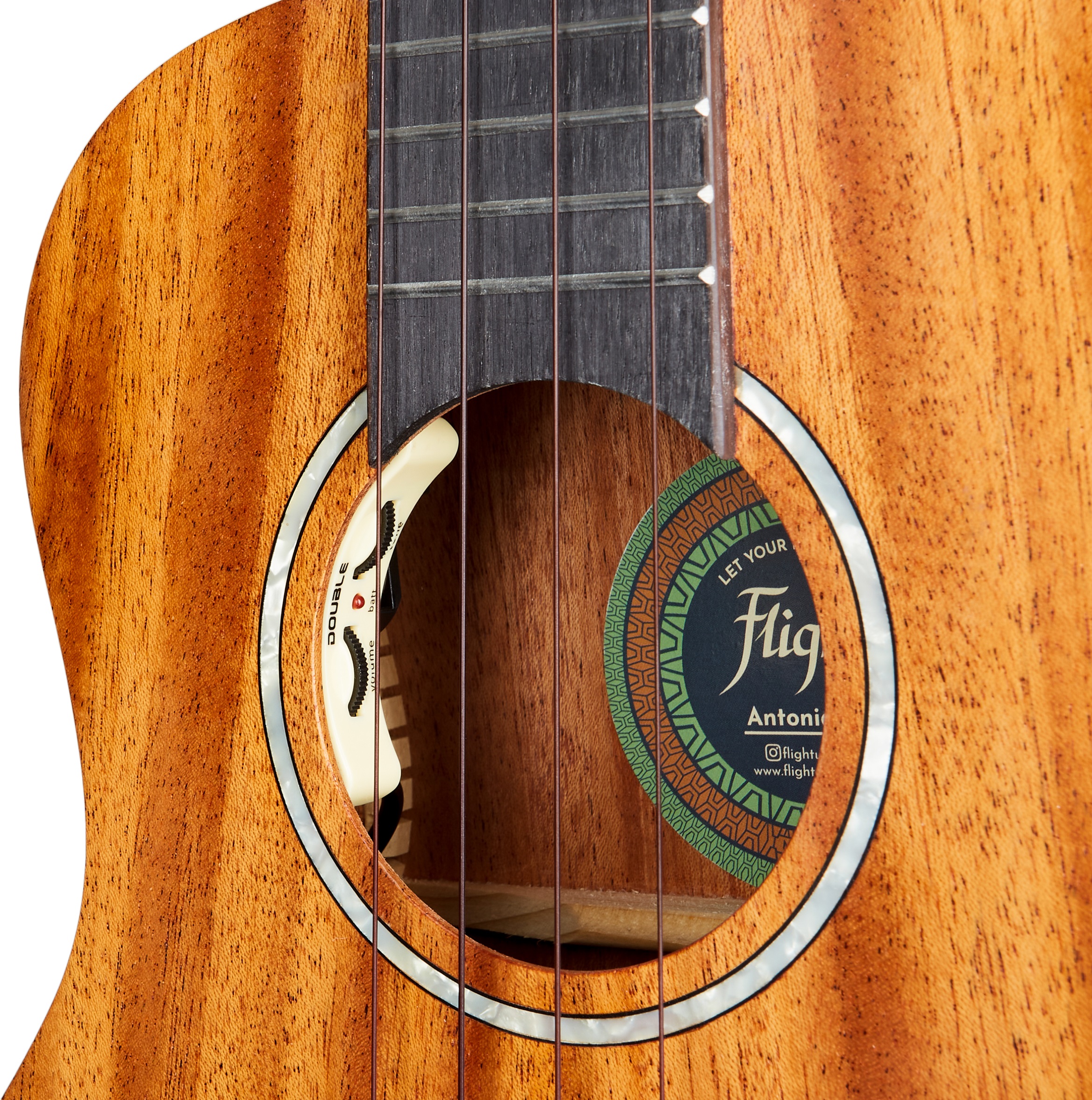 Elektroakustické ukulele Séria Princess od spoločnosti Flight obsahuje polomasívne akustické a elektroakustické modely ukulele s viacerými zaujímavými konštrukčnými prvkami. Modely Victoria, Sophia, Leia a ďalšie sa dodávajú v štýlovom červenom gig bagu s 15 mm polstrovaním. Telo tenorového ukulele Antonia je vyrobené z mahagónu (predná doska z masívneho dreva). Ku krku z okoumé je prilepený hmatník z dreva purpleheart osadený osemnástimi pražcami. Struny sú uchytené prostredníctvom sedla a kosteného nultéh