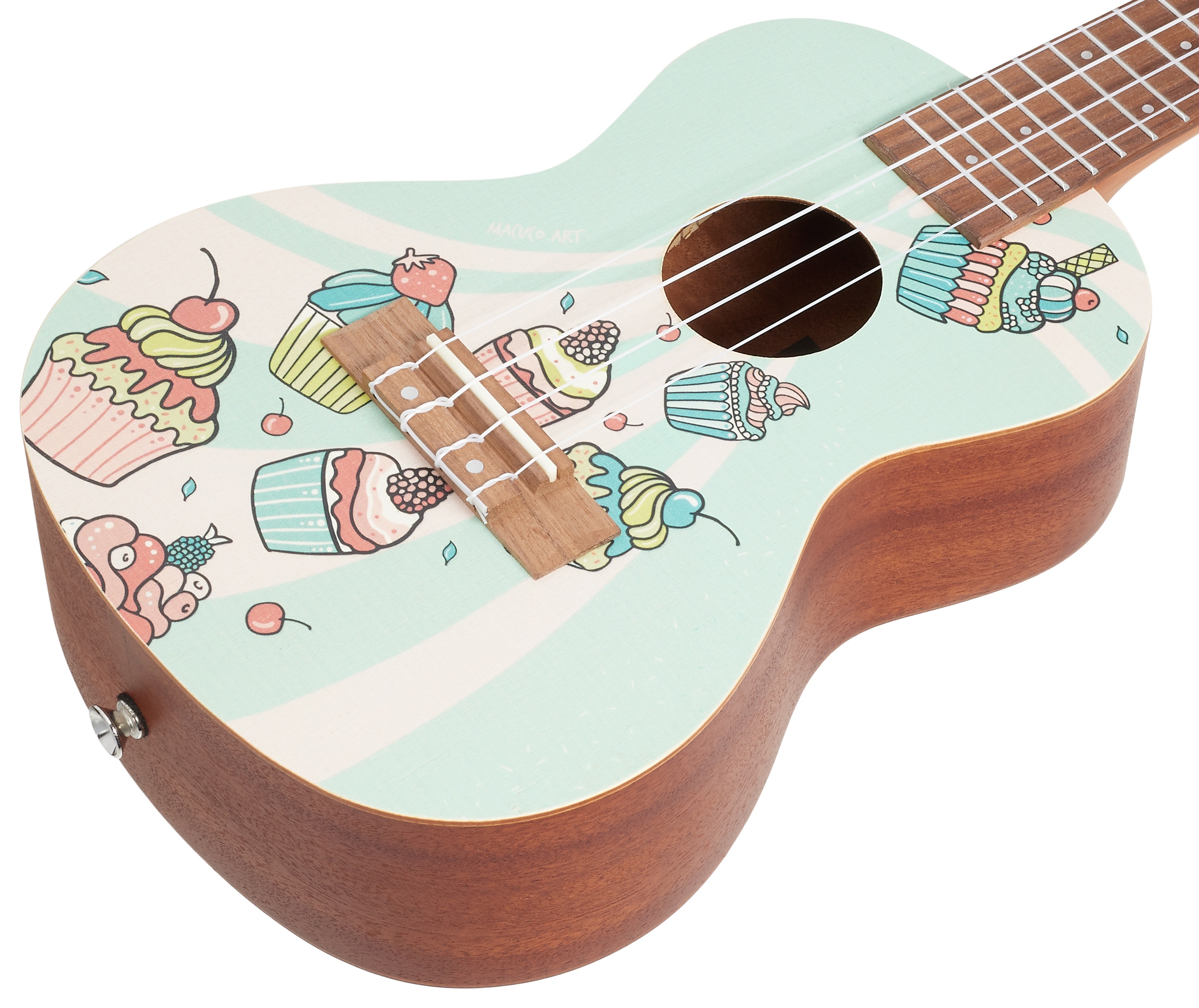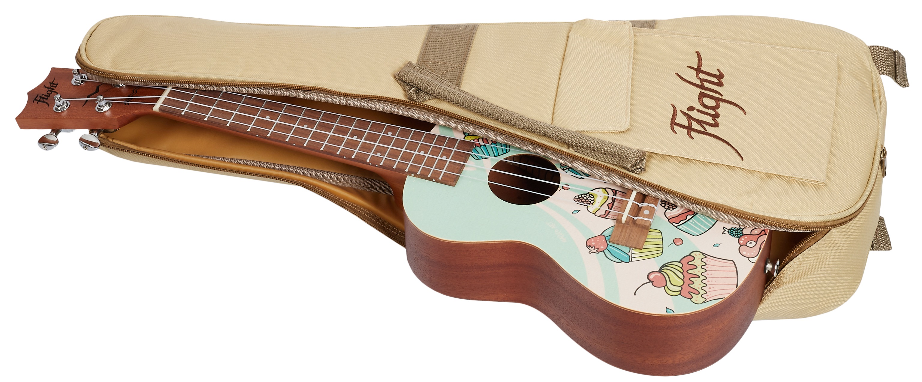 Akustické ukulele Modelová rada Flight’s Art ponúka modely ukulele vo farebných, atraktívnych dizajnoch inšpirovaných svetom módy. Vďaka svojej cenovej dostupnosti sú skvelou voľbou pre začínajúcich hráčov na ukulele a ukulele, ale určite neurazia ani skúsených hráčov. Predná doska tohto koncertného ukulele je vyrobená z laminovaného smreka, zatiaľ čo zadná doska a luby sú z laminovaného mahagónu. Prirodzenú rezonanciu ukulele umocňuje jemne klenutá zadná doska. Krk a hmatník nástroja sú vyrobené z africkéh