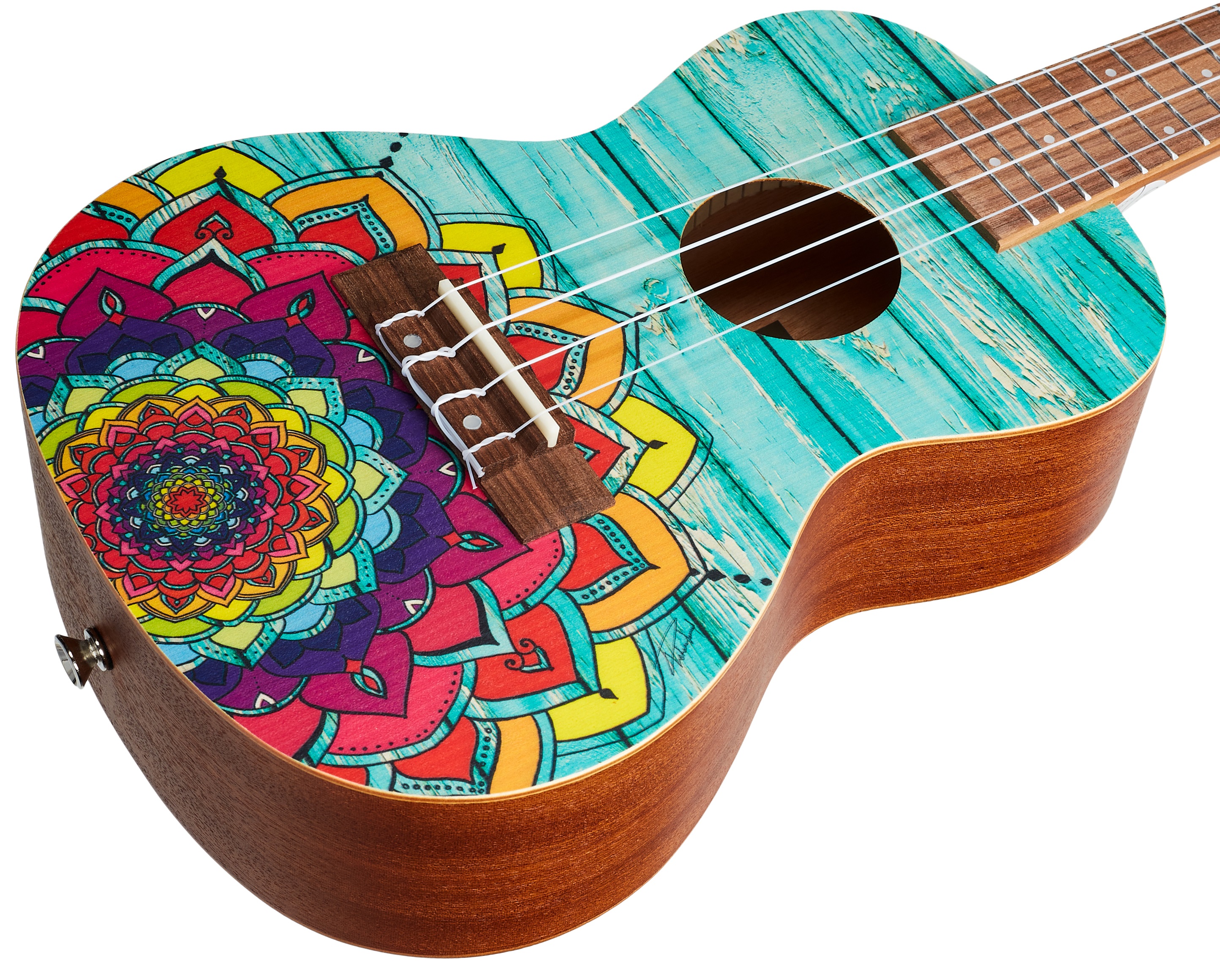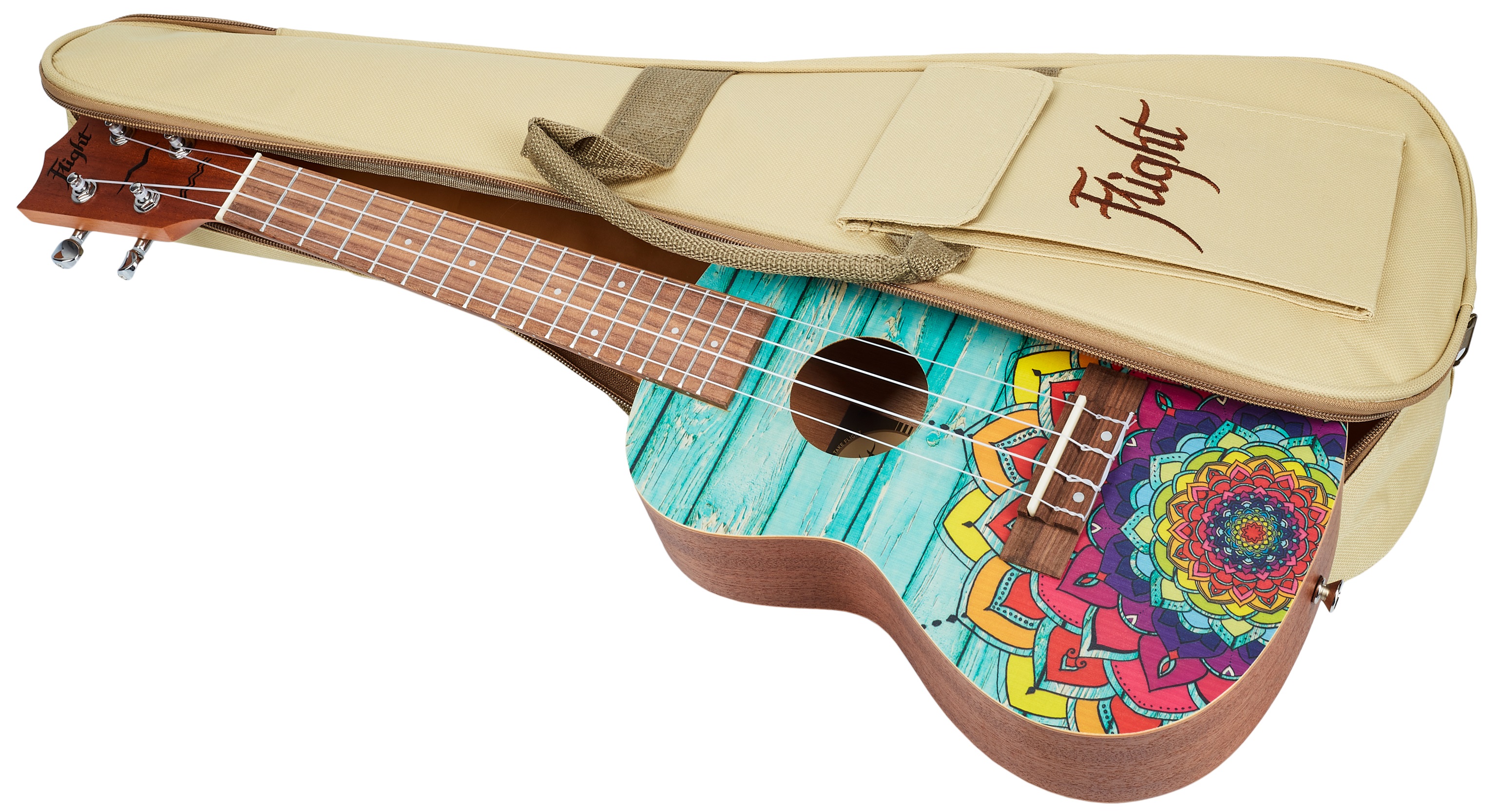 Akustické ukulele Modelová rada Flight’s Art ponúka modely ukulele vo farebných, atraktívnych dizajnoch inšpirovaných svetom módy. Vďaka svojej cenovej dostupnosti sú skvelou voľbou pre začínajúcich hráčov na ukulele a ukulele, ale určite neurazia ani skúsených hráčov. Predná doska tohto koncertného ukulele je vyrobená z laminovaného smreka, zatiaľ čo zadná doska a luby sú z laminovaného mahagónu. Prirodzenú rezonanciu ukulele umocňuje jemne klenutá zadná doska. Krk a hmatník nástroja sú vyrobené z africkéh