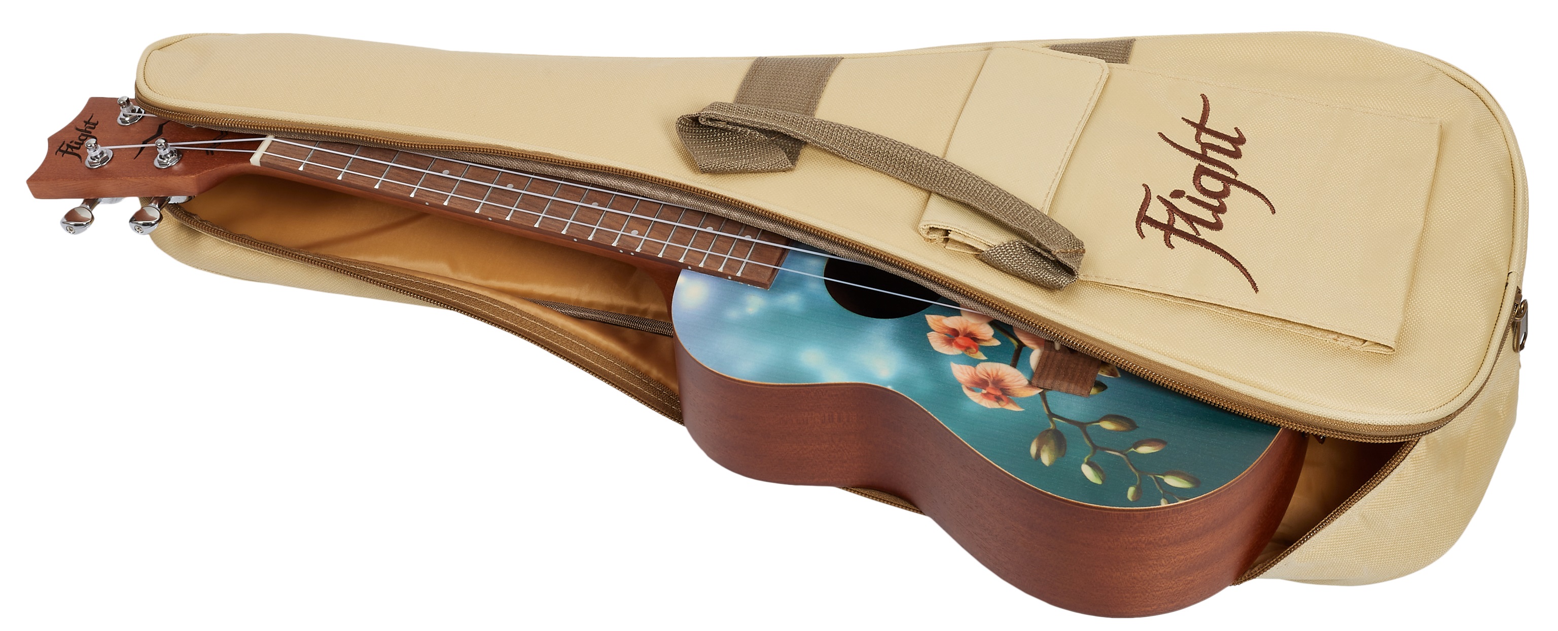 Akustické ukulele Modelová rada Flight’s Art ponúka modely ukulele vo farebných, atraktívnych dizajnoch inšpirovaných svetom módy. Vďaka svojej cenovej dostupnosti sú skvelou voľbou pre začínajúcich hráčov na ukulele a ukulele, ale určite neurazia ani skúsených hráčov. Predná doska tohto koncertného ukulele je vyrobená z laminovaného smreka, zatiaľ čo zadná doska a luby sú z laminovaného mahagónu. Prirodzenú rezonanciu ukulele umocňuje jemne klenutá zadná doska. Krk a hmatník nástroja sú vyrobené z africkéh