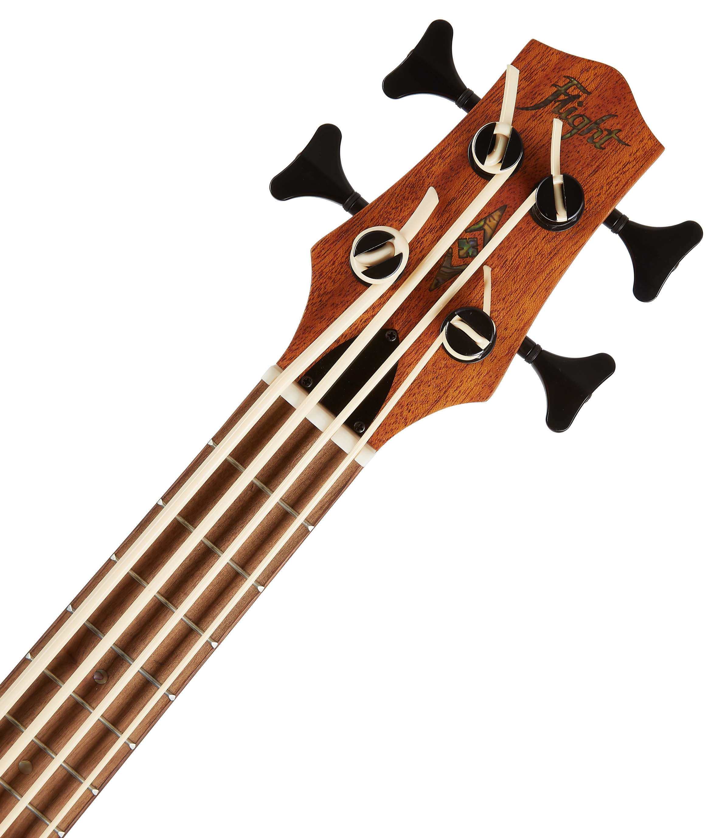 Basové ukulele V širokej ponuke značky Flight nájdete aj model basového ukulele. Telo tohto nástroja je vyrobené z laminovaného mahagónu. Krk a hmatník sú vyrobené z afrického okoumé a orechového dreva, čo je tiež pomerne často používaná kombinácia drevín. Struny sú ukotvené v ladiacich mechanikách (Geared) a orechovom hmatníku nad kosteným pražcom a sedlom. O ozvučenie sa stará aktívna elektronika s trojpásmovým ekvalizérom a integrovanou ladičkou. Ukulele sa dodáva v štýlovom gig bagu. Slovinská značka Fl