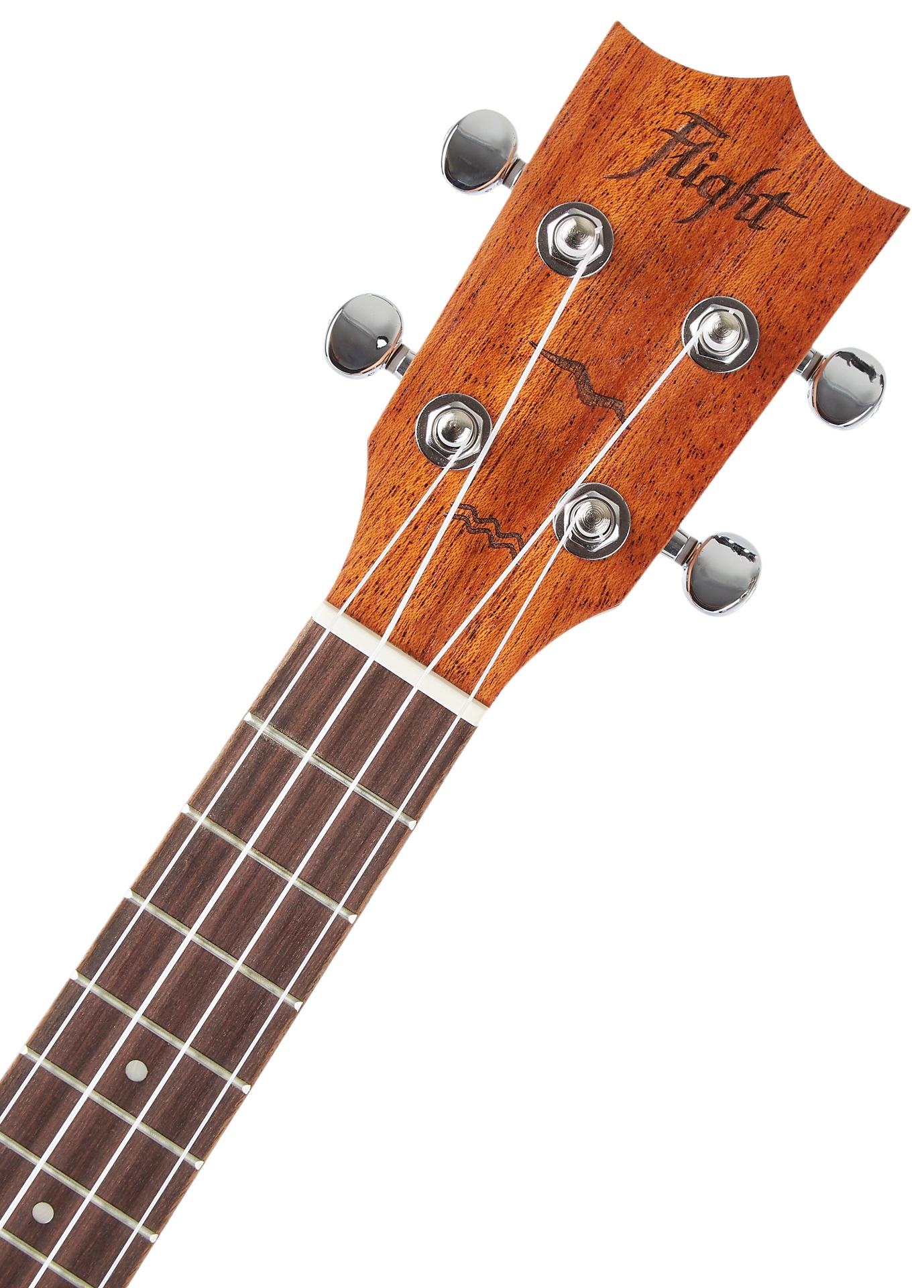 Akustické ukulele Séria Flight’s Designer ponúka cenovo dostupné modely ukulele s tradičnými prírodnými/ dizajnovými drevami vhodné pre začínajúcich hráčov na ukulele a ukulele. Telo tohto koncertného ukulele je vyrobené z laminovaného mahagónu. Krk a hmatník nástroja sú vyrobené z afrického okoumé a orechového dreva, čo je tiež pomerne často používaná kombinácia drevín. Struny sú ukotvené prostredníctvom kosteného hmatníka a sedlového pražca v chrómových die-cast ladiacich mechanikách a orechovom hmatníku.