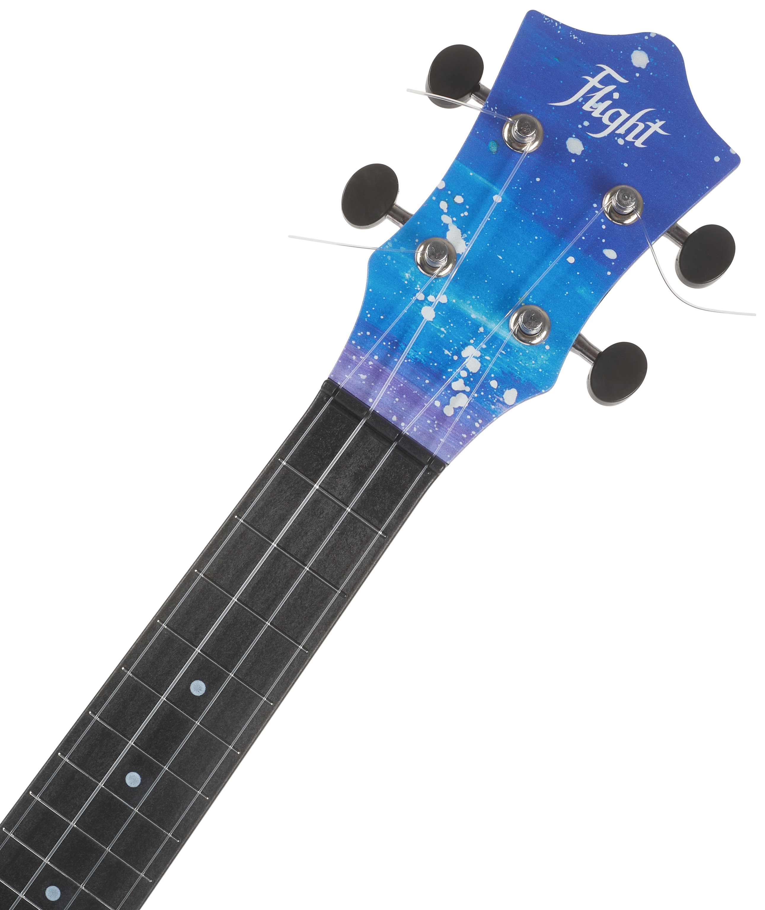 Akustické ukulele Séria Ultra Travel od spoločnosti Flight ponúka cenovo dostupné modely ukulele vyrobené zo zosilneného plastu (polykarbonátu), takže bez úhony prežijú vaše výkyvy nálad aj vrtochy počasia. Telo z polykarbonátom vystuženého plastu spolu s modernou mriežkovanou výstuhou a fluorokarbónovými strunami dodávajú sopránovému ukulele UTS-42 čistý, úderný zvuk, ktorý je na plastové ukulele veľmi hlasný. Hmatník a krk sú vyrobené z rovnakého plastového materiálu ako telo. Struny sú ukotvené v ladiaci