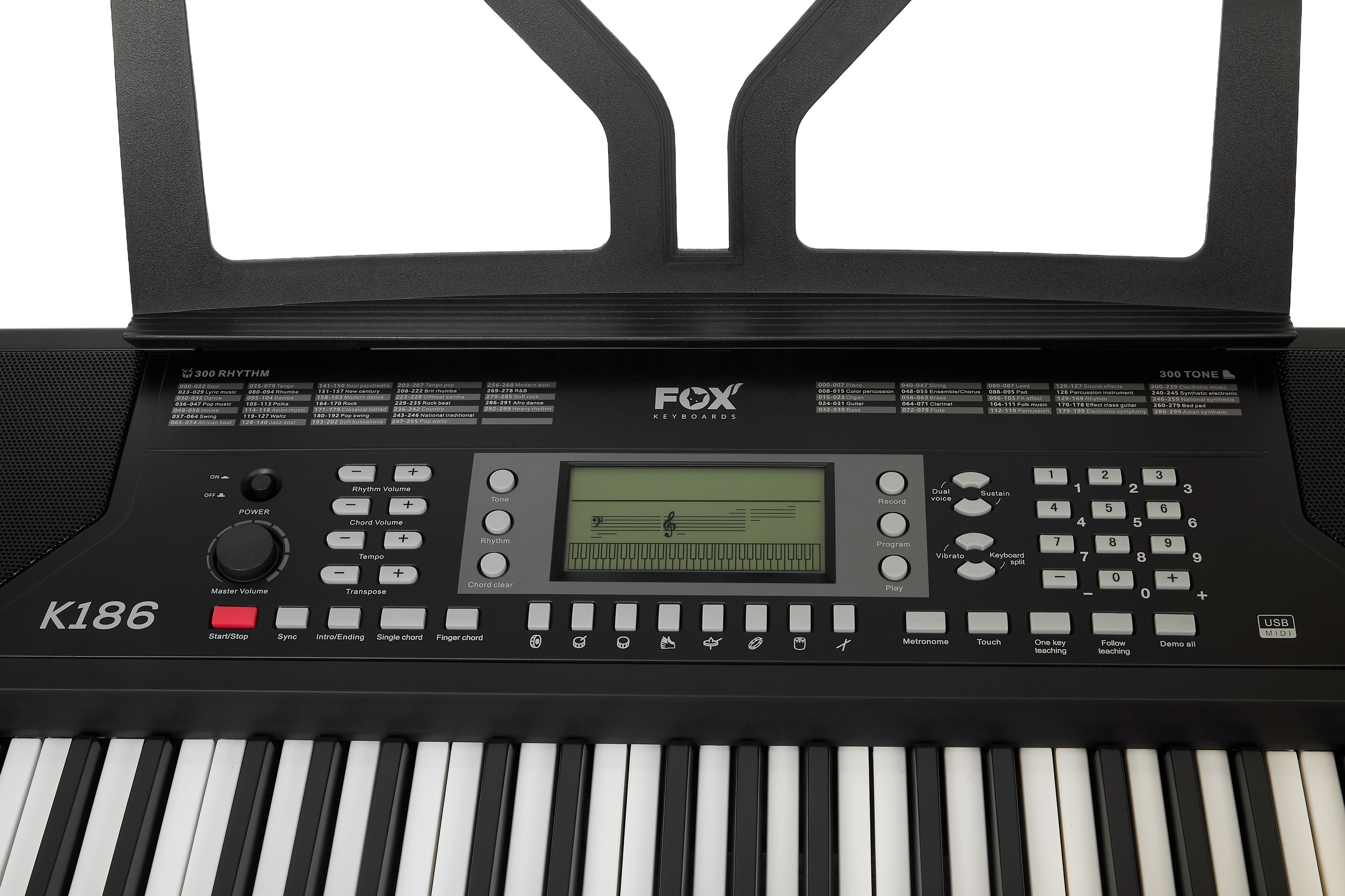 Klávesy s dynamikou úderu Klávesové nástroje FOX sú obľúbené pre svoj bezkonkurenčný pomer cena/výkon a sú vhodné najmä pre začínajúcich a detských hudobníkov. Budú im ponúknuté všetky základné funkcie, ktoré im pomôžu naučiť sa základné princípy hudby a spoznať rôzne farby zvuku. A ak sa hudobná vášeň nakoniec nerozvinie, nemusíte smútiť nad tým, že ste do svojho prvého nástroja investovali neprimerane vysokú sumu. FOX K168 ponúka 61 klávesov štandardnej veľkosti s dynamikou, osem tlačidiel pre bicie nástr