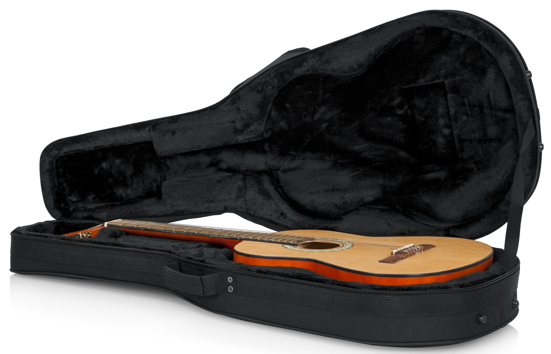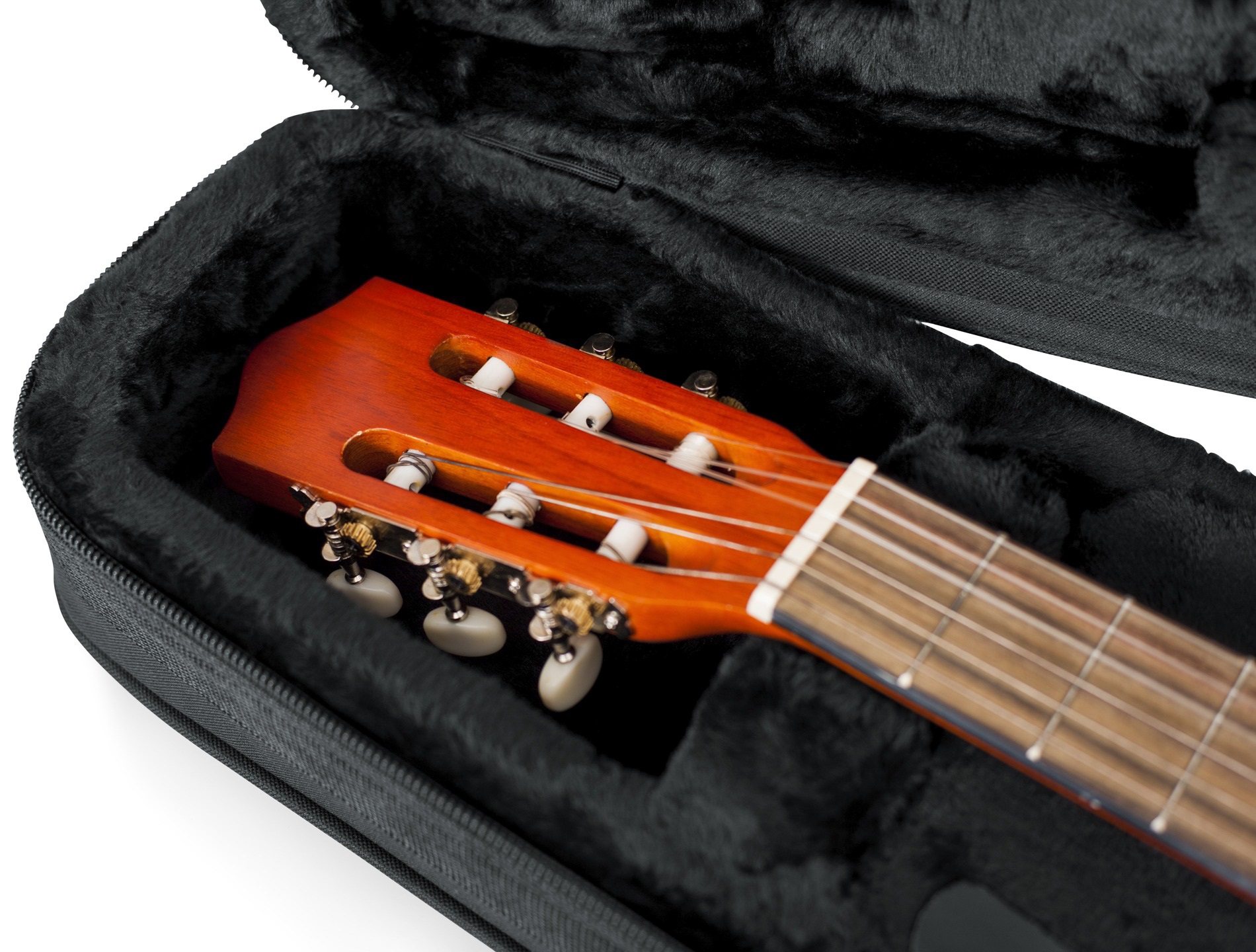 Kufor na klasickú gitaru Puzdro Gator GL-Classic je ľahké, ale mimoriadne odolné puzdro pre klasické gitary štandardnej veľkosti 4/4, ktoré kombinuje to najlepšie z oboch svetov – prenosnosť a ľahkosť mäkkého puzdra a pevnú ochranu tvrdého puzdra. Je ideálne pre hudobníkov, ktorí často cestujú a potrebujú mať istotu, že ich nástroj bude vždy v bezpečí. Vonkajšia konštrukcia z pevného nylonu s hustotou 600 denierov poskytuje