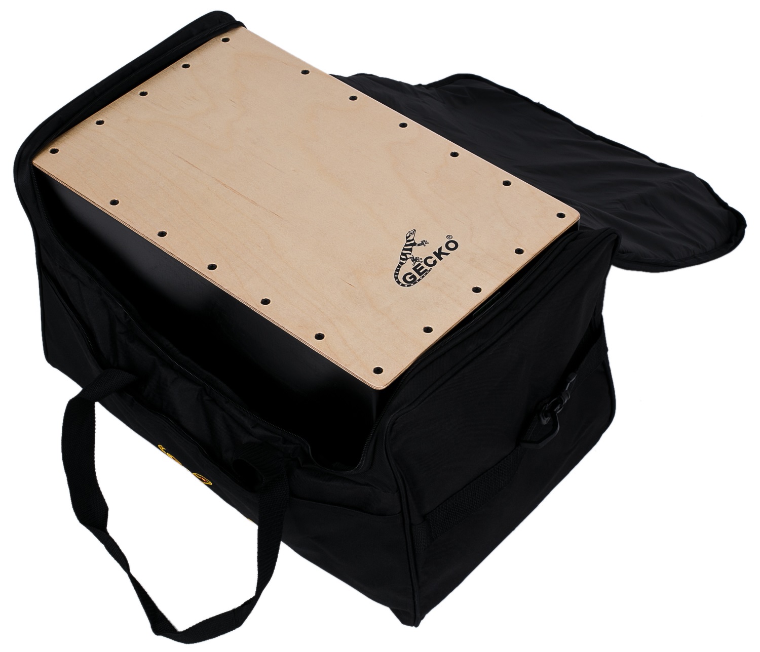 Obal na cajon Plátenné puzdro pre cajony Gecko s nylonovou podšívkou a 8 mm polstrovaním. Na prednej strane je otvorené vrecko na príslušenstvo. Je vybavená polstrovanou rukoväťou a ramenným popruhom.
