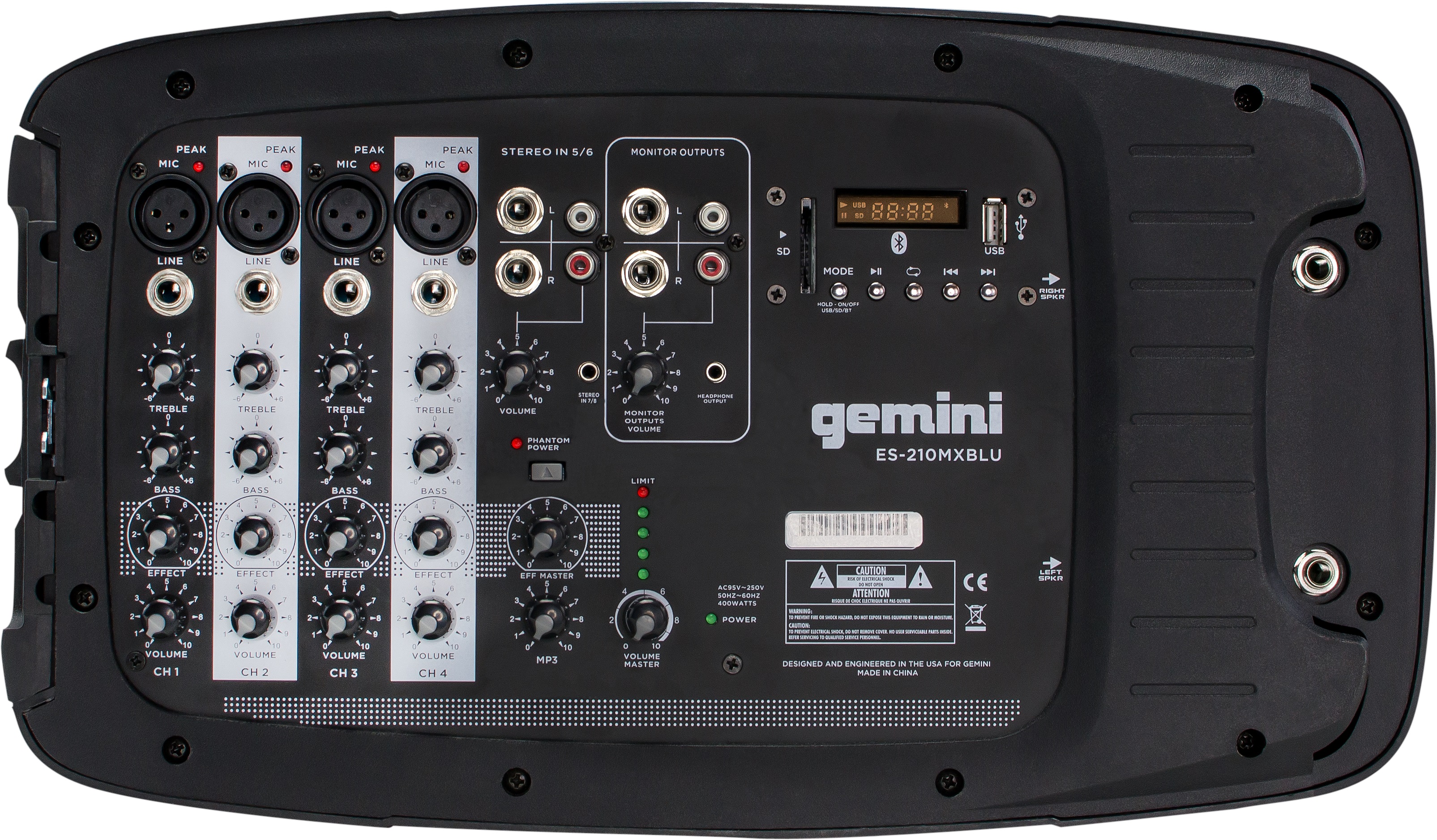 Ozvučovací systém Ozvučovací systém Gemini ES-210MXBLU je ideálny na záhradnú párty, svadbu, konferenciu, hudobné vystúpenie alebo iné podujatie, kde je potrebná kvalita stereofónneho zvuku. Zostava obsahuje dva pasívne reproduktory s 10″ wooferom a 1″ tweeterom, ktoré poskytujú maximálny výkon 600 W, výkonný powermix so zosilňovačom triedy D, ktorý dodáva 150 W RMS, ako aj úložný priestor na príslušenstvo, sadu prepojovací