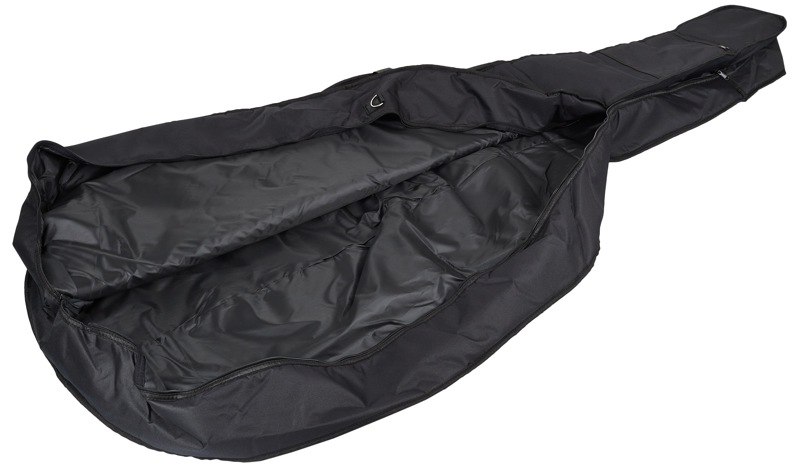 Obal na kontrabas Kufrík GEWA má 3 mm penovú výstelku, veľké vrecko na noty a vrecko na príslušenstvo, puzdro na sláčik a tri rukoväte bez popruhov.