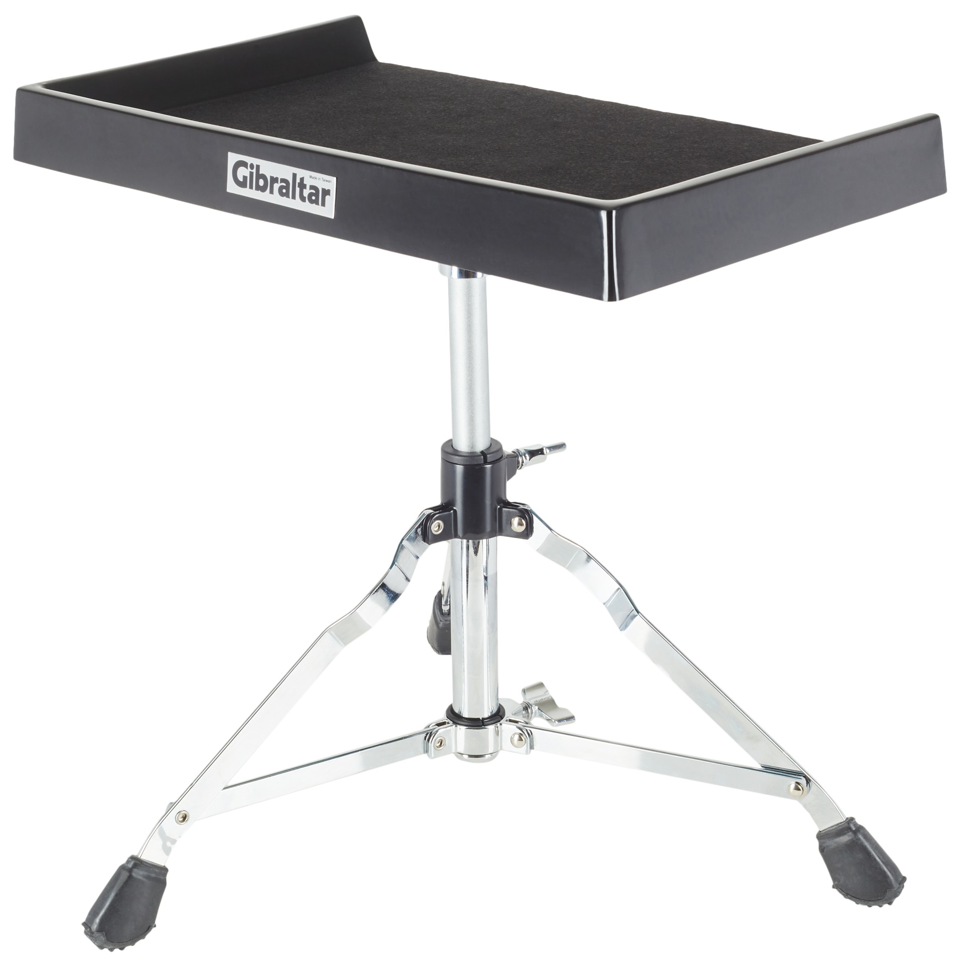 Stolček na perkusie Tento profesionálny stojan na bicie je vhodný najmä na príslušenstvo, mixážne pulty alebo inú elektroniku. Veľmi pevný a ľahký stôl zo sklených vlákien s rozmermi 40 x 25 cm je postavený na pevnej oceľovej trojnožke, ktorá mu poskytuje maximálnu stabilitu. Je potiahnutý mäkkou plstenou vrstvou a jeho okraje sú na troch stranách vyvýšené, aby sa zabránilo pádu alebo poškriabaniu uložených predmetov. Celý stojan je vďaka svojmu minimalistickému dizajnu veľmi nenápadný a vďaka nízkej hmotno