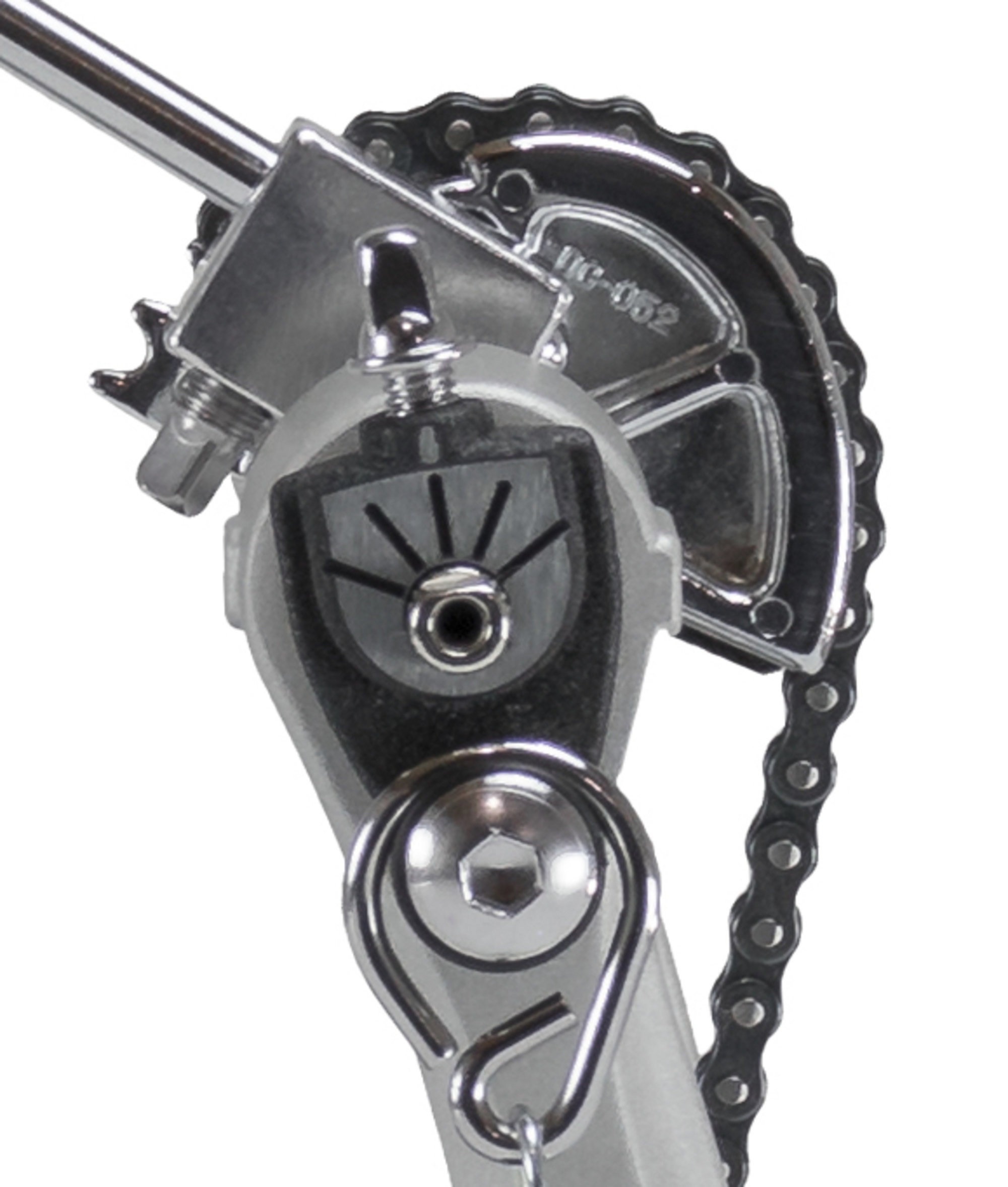 Pedál k basovému bubnu Pedál GRC5-S Road Class Chain Drive je spoľahlivý pedál basového bubna, ktorý kombinuje rýchlu odozvu, plynulú prevádzku a stabilnú konštrukciu. Vďaka sofistikovanému dizajnu a jednému reťazovému pohonu ponúka ideálnu rovnováhu medzi rýchlosťou, kontrolou a prirodzeným pocitom pri hraní. Elegantná konštrukcia inšpirovaná sériou G-Class zaručuje pevnosť a stabilitu aj pri intenzívnej hre. Srdcom pedálu je mecha