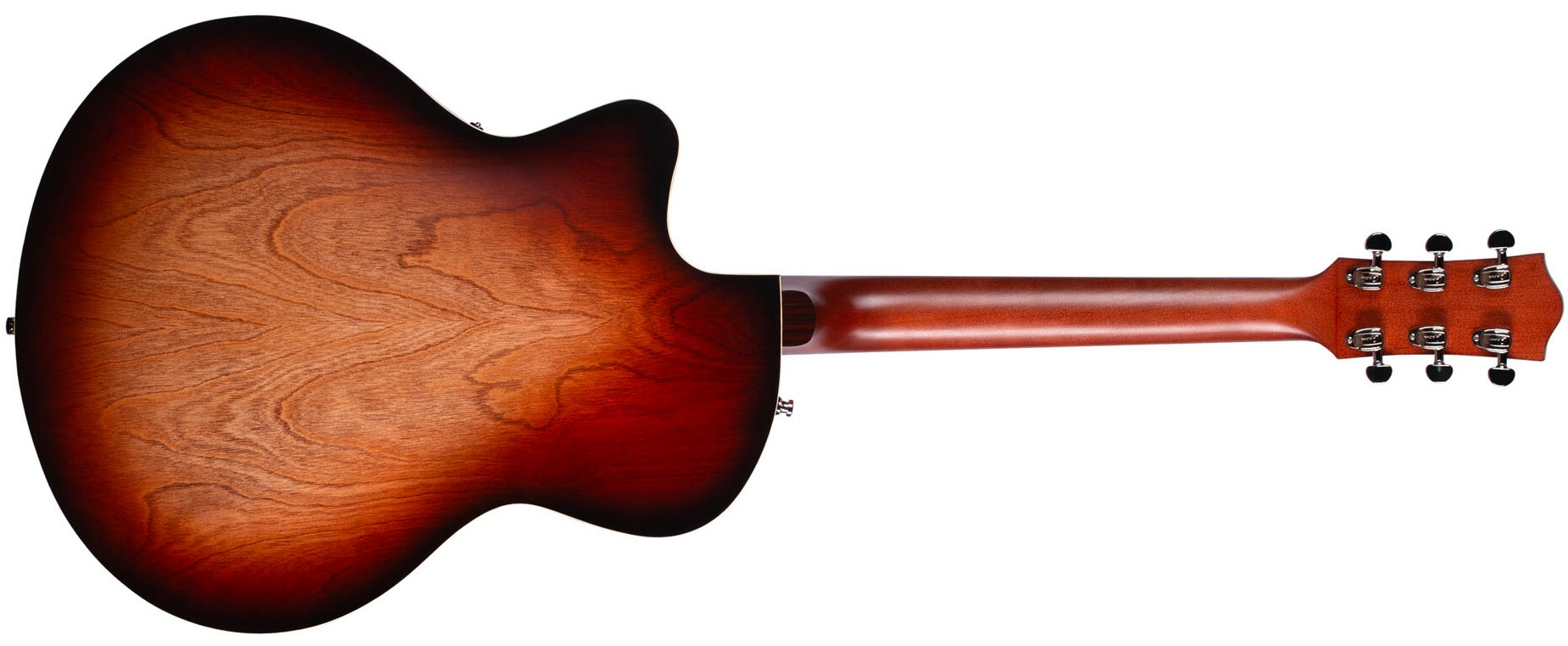 Semiakustická gitara Elektrická gitara 5th Avenue CW Kingpin II Vintage Burst kombinuje vintage estetiku mosadzných gitár z 50. rokov so zvukom a hrateľnosťou súčasných nástrojov. Klenuté telo gitary v tvare zvona je vyrobené z laminovanej kanadskej masívnej čerešne. Ku krku z javora so striebornými listami je prilepený palisandrový hmatník osadený dvadsaťjeden pražcami veľkosti Medium. Nižší výrez tela uľahčuje ladenie hmatníka vo vyšších polohách. Dva snímače P90 dodávajú