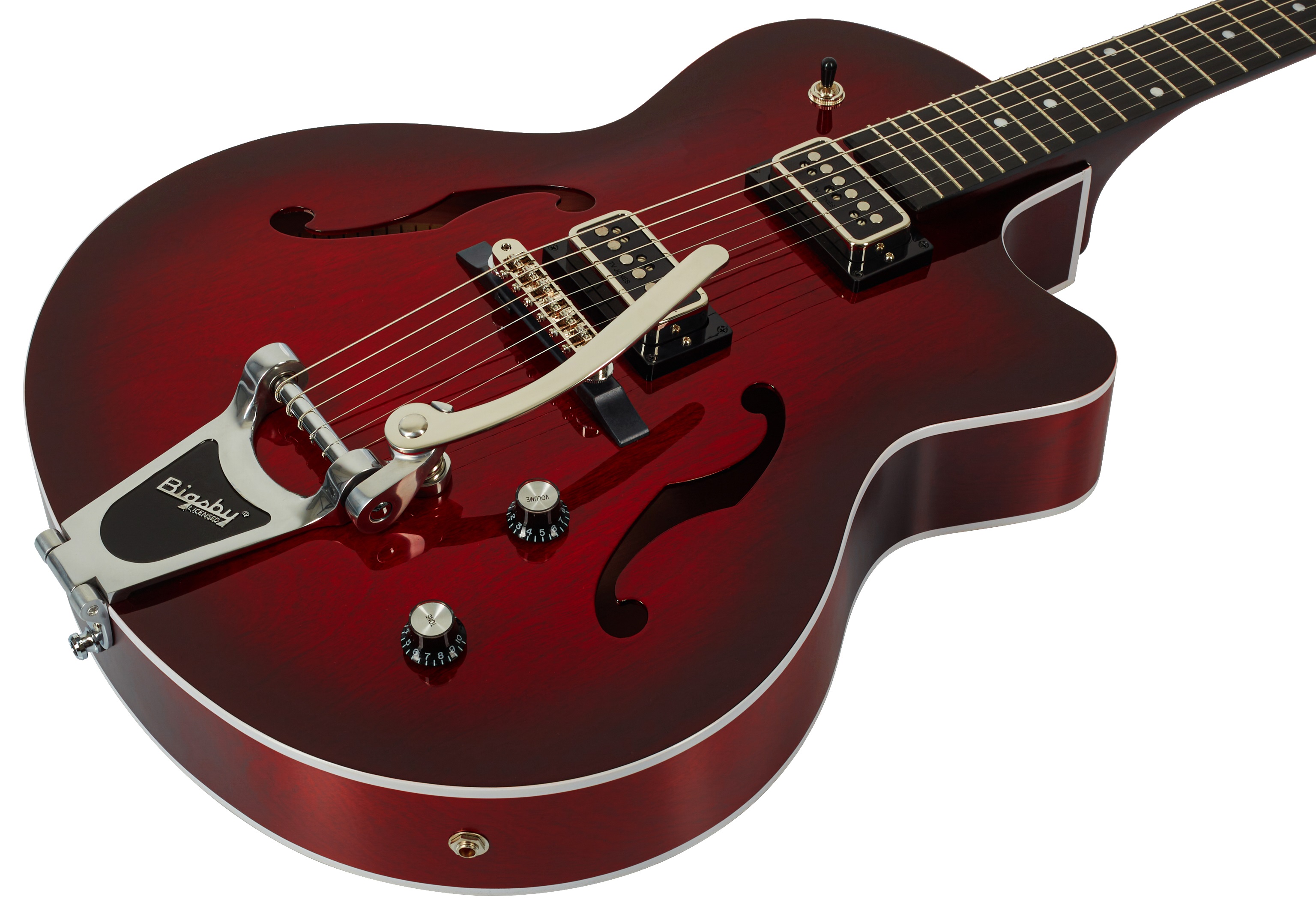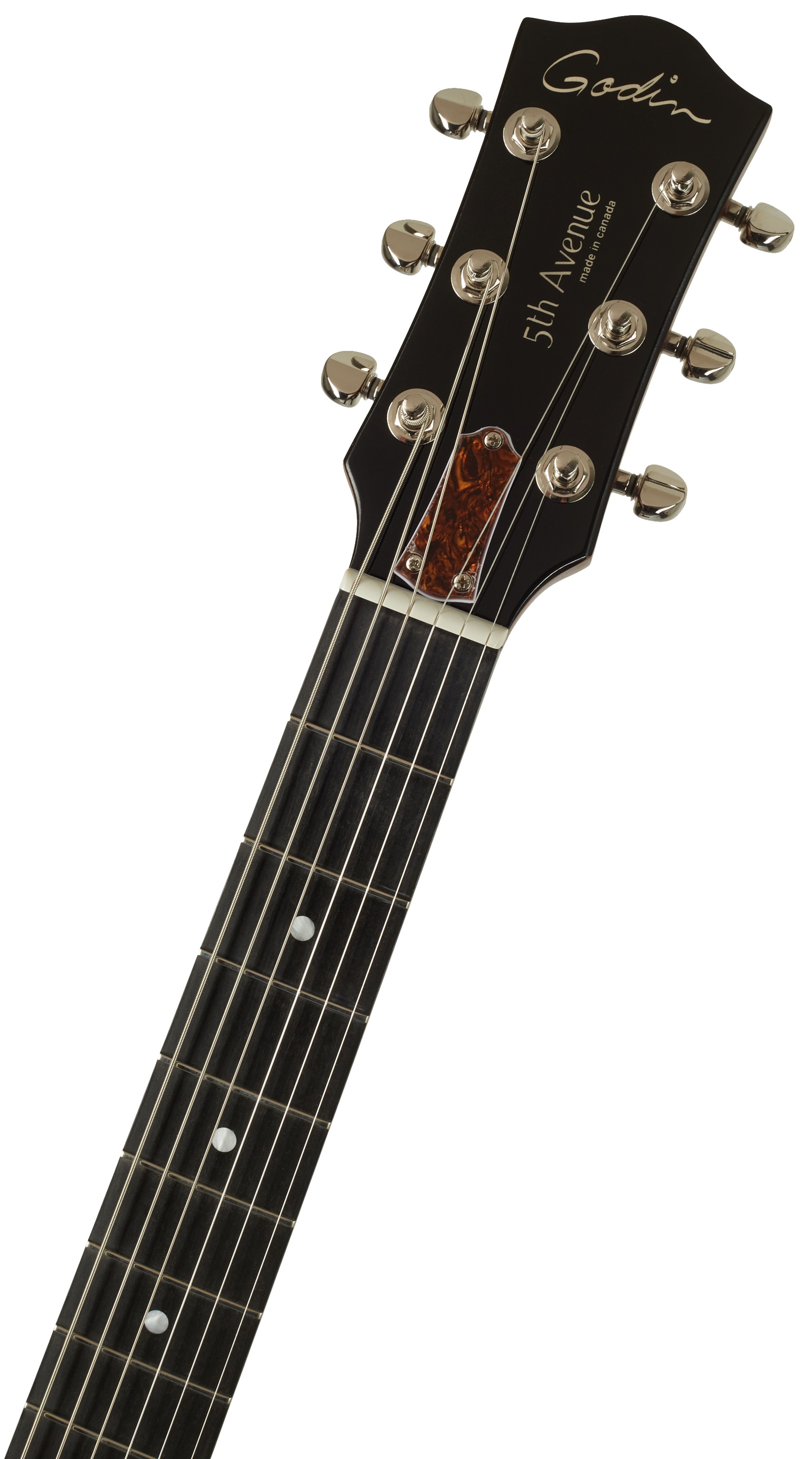 Semiakustická gitara Séria 5th Avenue kanadskej značky Godin ponúka elektrické gitary s dutým telom, ktoré kombinujú vintage estetiku gitár s dutým telom z 50. rokov s hrateľnosťou súčasných nástrojov. Duté telo modelu 5th Avenue Uptown T-Armond Havana Burst je vyrobené z laminovaného kanadského plochého čerešňového dreva. Strieborný javorový krk je vybavený kompozitným hmatníkom Richlite s 21 pražcami. Polohové značky uľahčujú orientáciu na hmatníku. Dva s