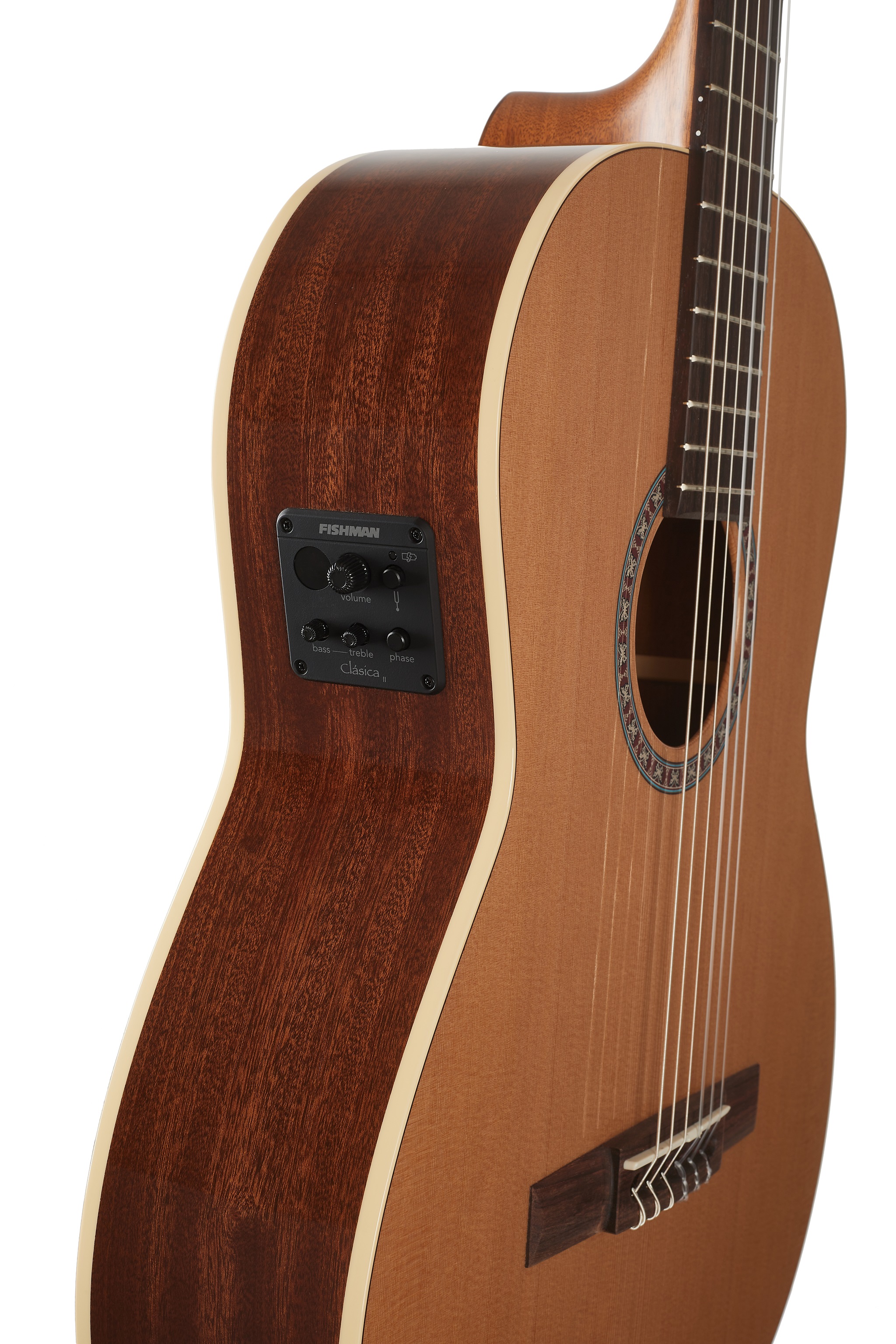 Klasická elektroakustická gitara Klasické gitary kanadskej značky Godin s označením Collection sú nástroje z masívneho dreva vyrobené z prvotriednych materiálov, ktoré potešia všetkých hudobníkov hľadajúcich gitary s modernejším dizajnom a sofistikovaným zvukom. Rezonančná doska modelu Concert Clasica II je vyrobená z výberového kusu masívneho cédru, zatiaľ čo zadná doska a luby sú z masívneho mahagónu. Mahagónový krk a palisandrový hmatník s devätnástimi pražcami tiež zapadajú do „All-Star“ drevenej zostav