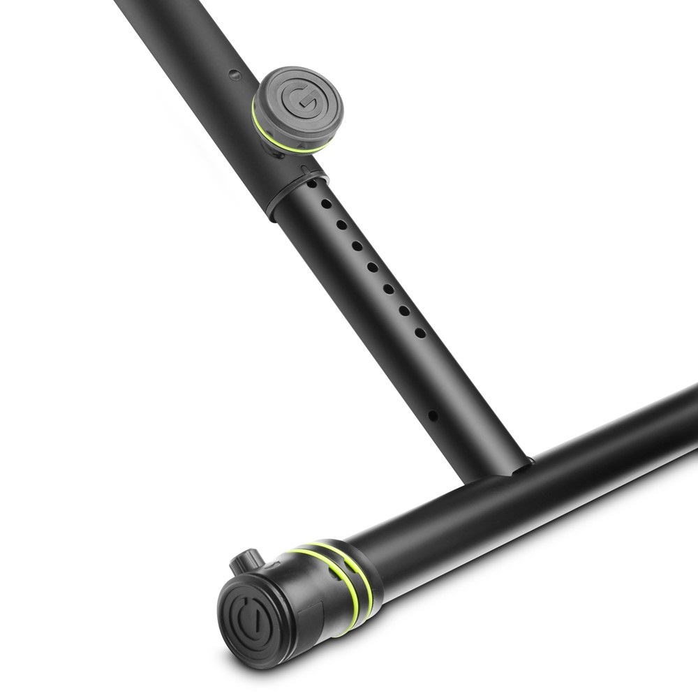 Klávesový stojan Gravity KS TS 01 B je robustný stojan na klávesy so stolnou konštrukciou, ktorý poskytuje maximálnu stabilitu pre váš nástroj. Nastavenie výšky sa vykonáva v malých krokoch a stojan je vhodný na sedenie aj státie. Nohy sa dajú nastaviť buď rovnobežne, alebo pod miernym uhlom, čo zvyšuje stabilitu a priestor pre nohy. Horné lišty sa dajú nastaviť podľa šírky kľúčov a v prípade potreby ich možno polohovať o 360°. Samozrejmosťou je skladacia konštrukcia na jednoduchú prepravu. Stojan je vhodný