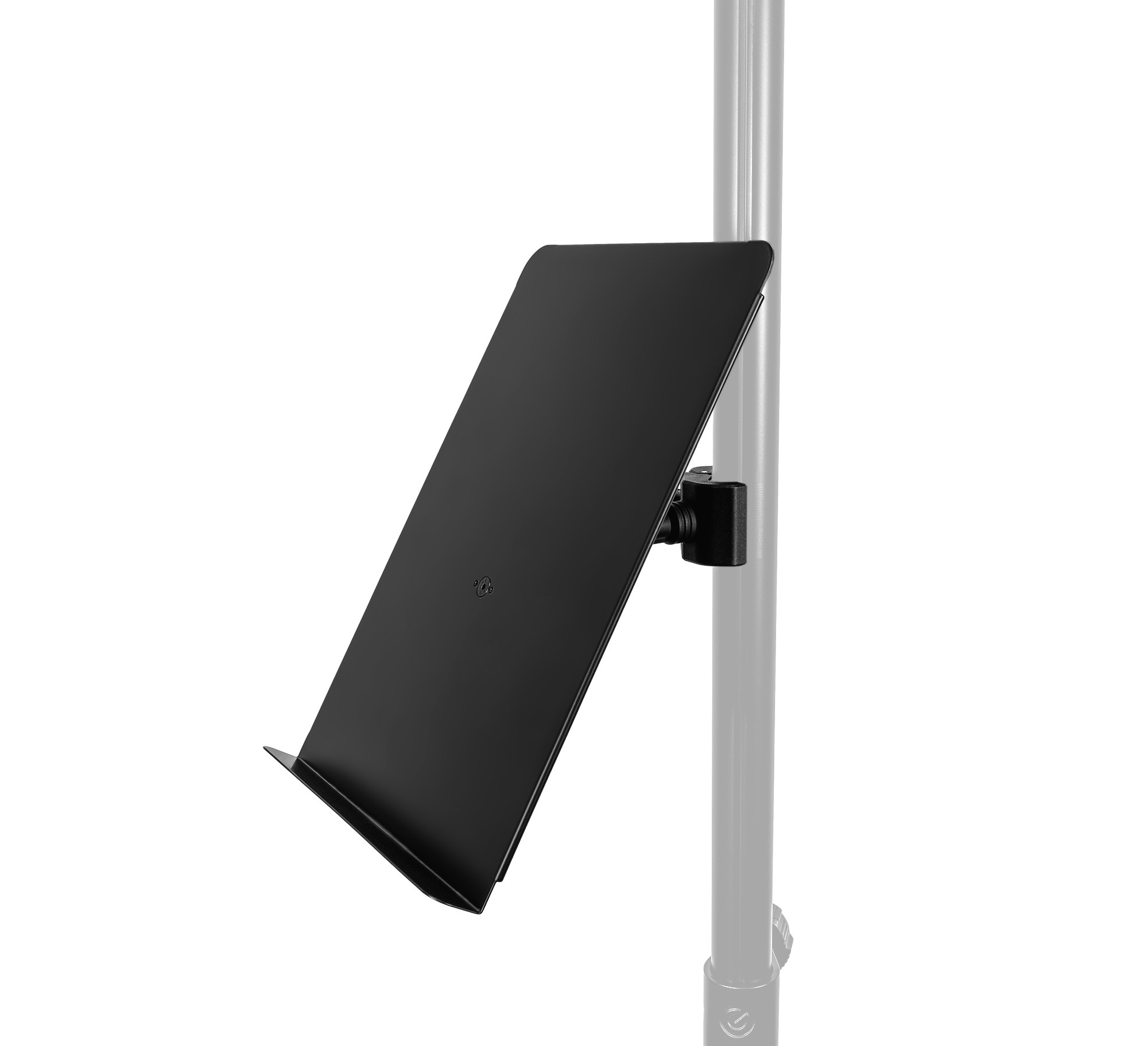 Notový stojan Praktický cestovný držiak na noty s rozmermi 310 mm (v) x 220 mm (š), dĺžkou ramena 110 mm a upínacím mechanizmom, ktorý sa upevňuje na stojany s priemerom tyče 15 – 35 mm. Držiak/počítač je vyrobený z ocele, rameno a upínací mechanizmus z plastu. Držiak/počítadlo sa dá otáčať o 360 stupňov a nakláňať o 180 stupňov.