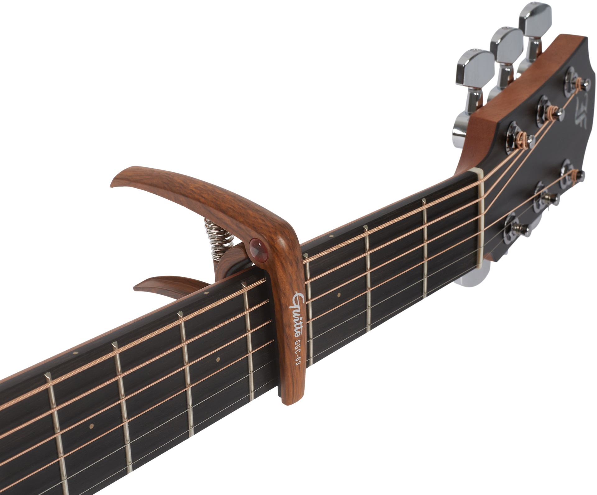 Kapodaster Vysokokvalitné a všestranné kapodastre Guitto sú vyrobené z kvalitných materiálov a umožňujú transponovať ladenie v priebehu niekoľkých sekúnd. Zachováva čistotu a vyváženosť vášho nástroja, zatiaľ čo jeho kompaktné rozmery a nízka hmotnosť vám umožňujú mať kapodastr vždy po ruke. Rukoväť je zakončená výrezom na jednoduché vysúvanie kolíkov pri výmene strún. Kapodastre sú k dispozícii v štyroch farbách s pozinkovaným povrchom, aby dokonale ladili s vaším vkusom a štýlom.