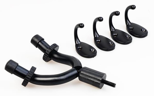 Gitarový vešiak Štýlový multifunkčný stojan na gitaru, basgitaru, ukulele alebo husle. Tento model je vyrobený z elegantného dreva s prírodnou povrchovou úpravou a okrem samotného stojana na nástroje je vybavený štyrmi háčikmi alebo poličkou s úložným priestorom. Vďaka tomu môžete mať popri nástroji po ruke aj svoje obľúbené príslušenstvo, ako napríklad ladičku alebo trsátka. Montážny hardvér je súčasťou balenia.