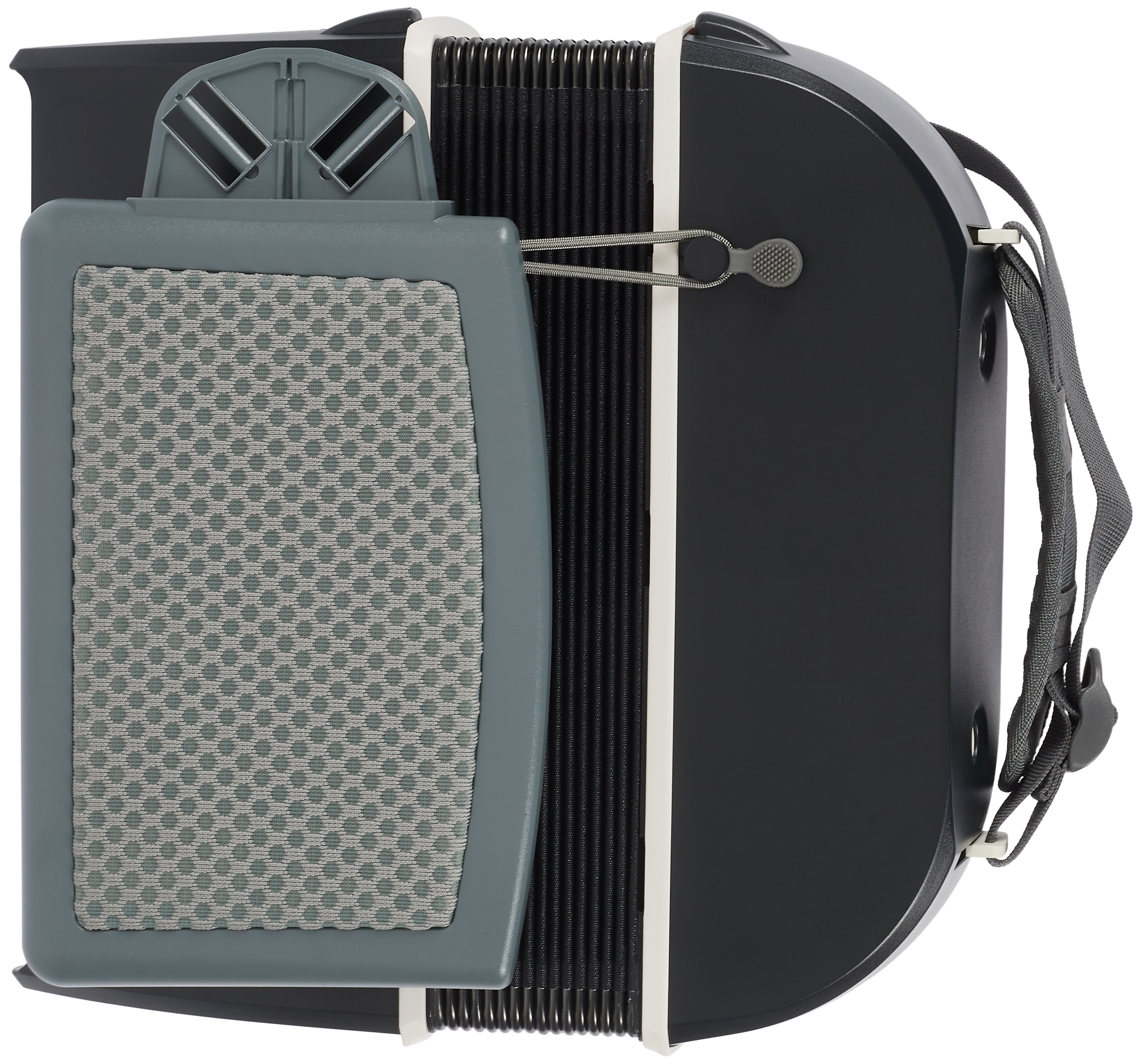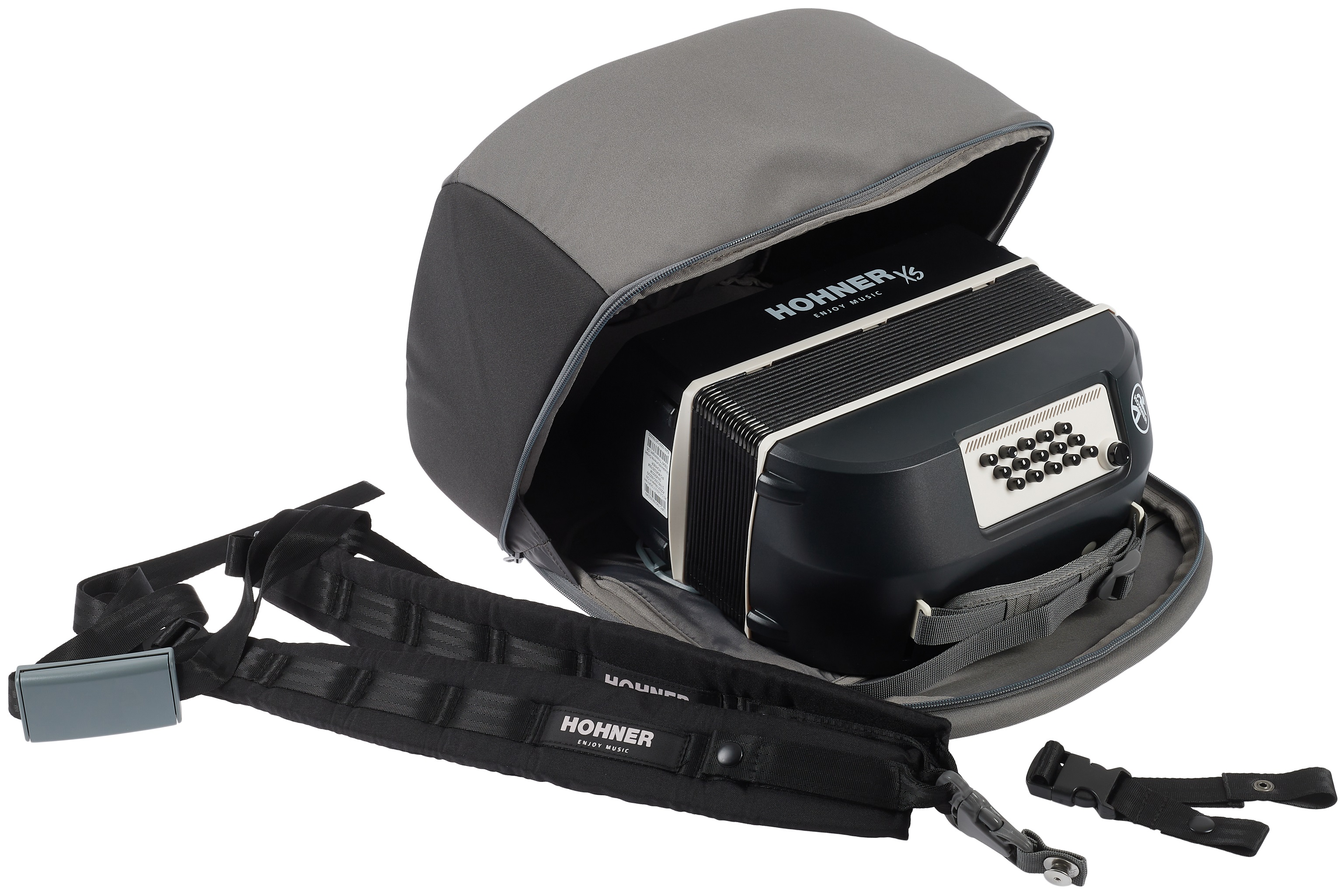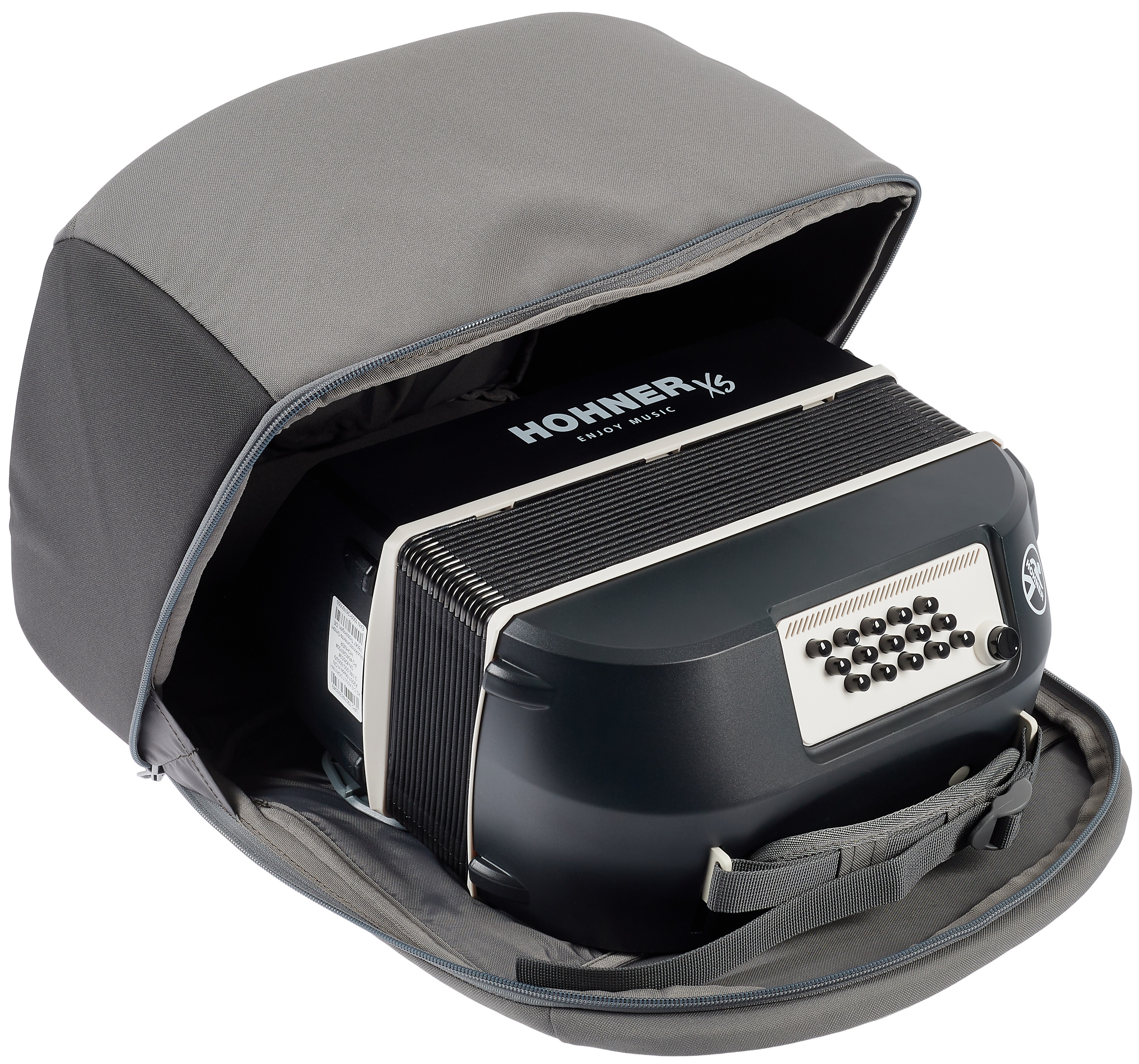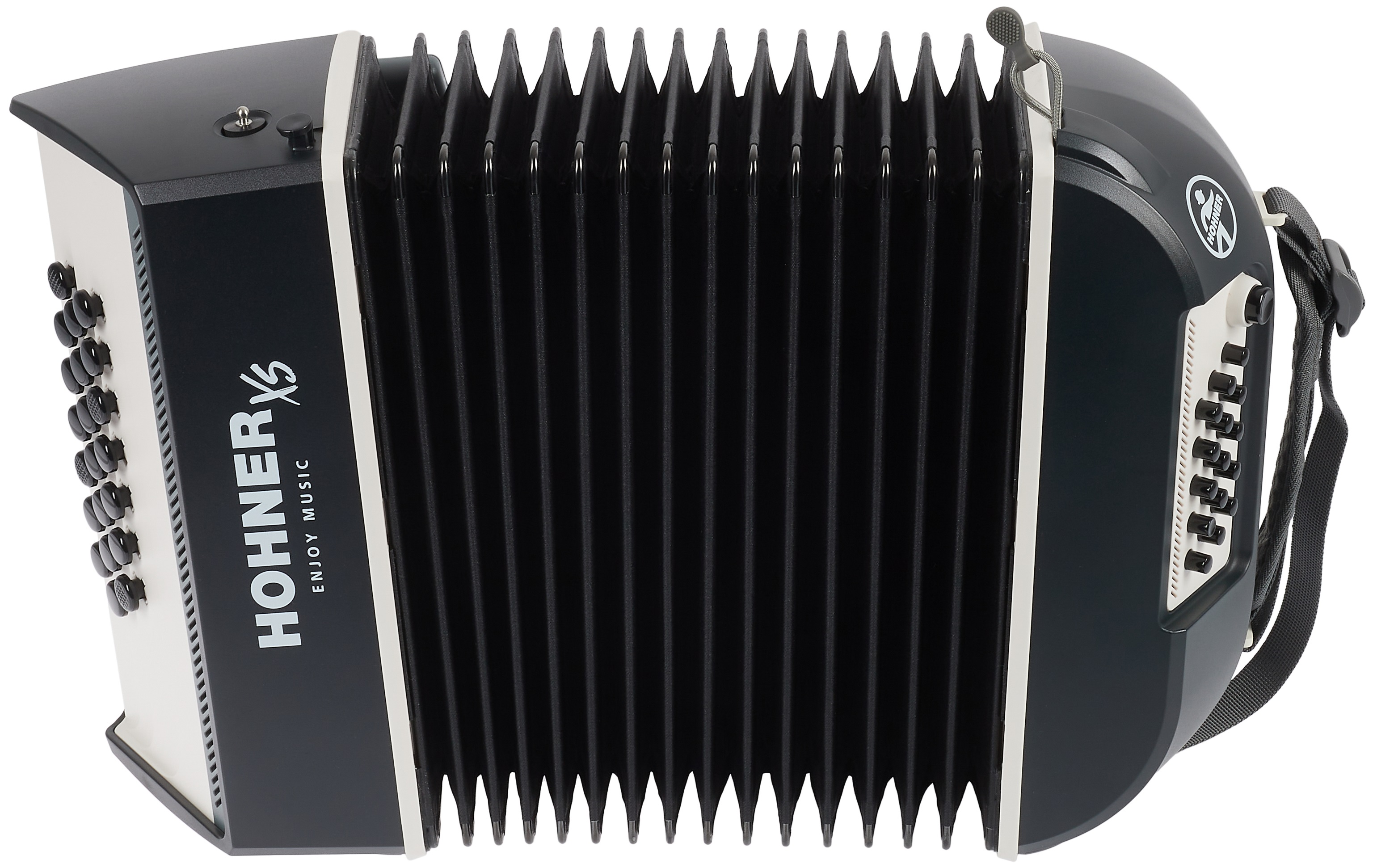 Diatonický akordeón Hohner XS Adult C-Stepped je kompaktný gombíkový akordeón so systémom klávesov C vhodný pre začínajúcich akordeonistov všetkých vekových kategórií. Vďaka kompaktnému tvaru, nízkej hmotnosti a praktickému systému uchytenia Click and Play poslúži aj skúseným akordeonistom ako cestovný nástroj. Nástroj má ergonomický dizajn pre maximálne pohodlie pri hraní, konštrukciu z odolného plastu, 21 klávesov, 15 basov a rozsah od h do g2. Akordeón sa dodáva v gig bagu. Špecifikácie: – Rozmery: 28,5