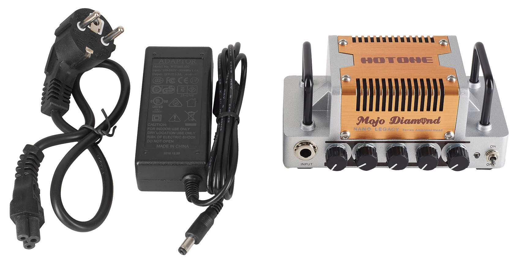 Gitarový tranzistorový zosilňovač Mojo Diamond je ultrakompaktný gitarový zosilňovač zo série Nano Legacy čínskej značky Hotone. Ide o jednokanálový zosilňovač s maximálnym výkonom 5 W, ktorý vám aj pri pohodlnej izbovej hlasitosti ponúkne zvuk s charakterom podobným slávnej sérii Fender Tweed (Champ, Princeton, Twin atď.), podľa ktorej je modelovaný. Vďaka vstupu pre externé zdroje zvuku a slúchadlovému výstupu je ideálnou voľbou nástroja na domáce cvičenie/skladanie, pri ktorom sa nemusia nutne otriasať s