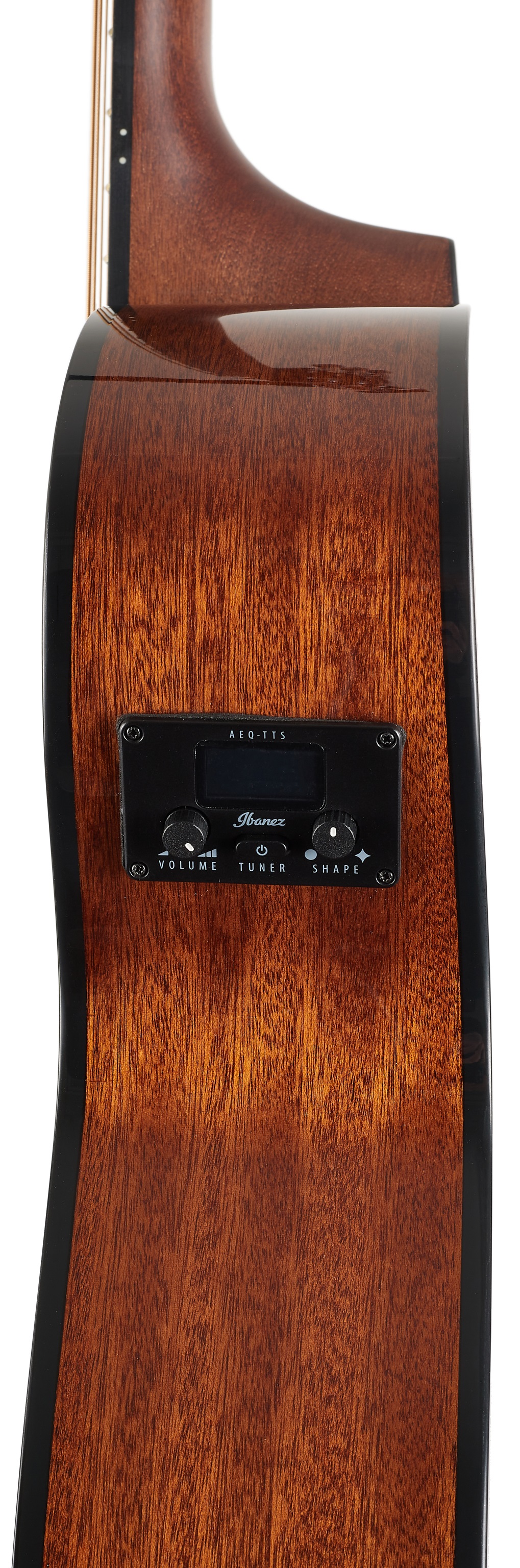 Ľavoruká elektroakustická gitara Séria AEG japonskej značky Ibanez ponúka cenovo dostupné modely elektroakustických gitár vybavených kvalitnou elektronikou. Sú dobrou voľbou pre úplných začiatočníkov aj skúsených hráčov, ktorí hľadajú spoľahlivú cestovnú/pracovnú gitaru na každú príležitosť. Vrstvené telo ľavorukého modelu AEG70L-TIH je vyrobené z prednej dosky z figurovaného javora a zadnej dosky a lubov z afrického sapele. Efektnú kresbu fládrovaného javora zvýrazňuje lesklý lak a vrchná povrchová úprava