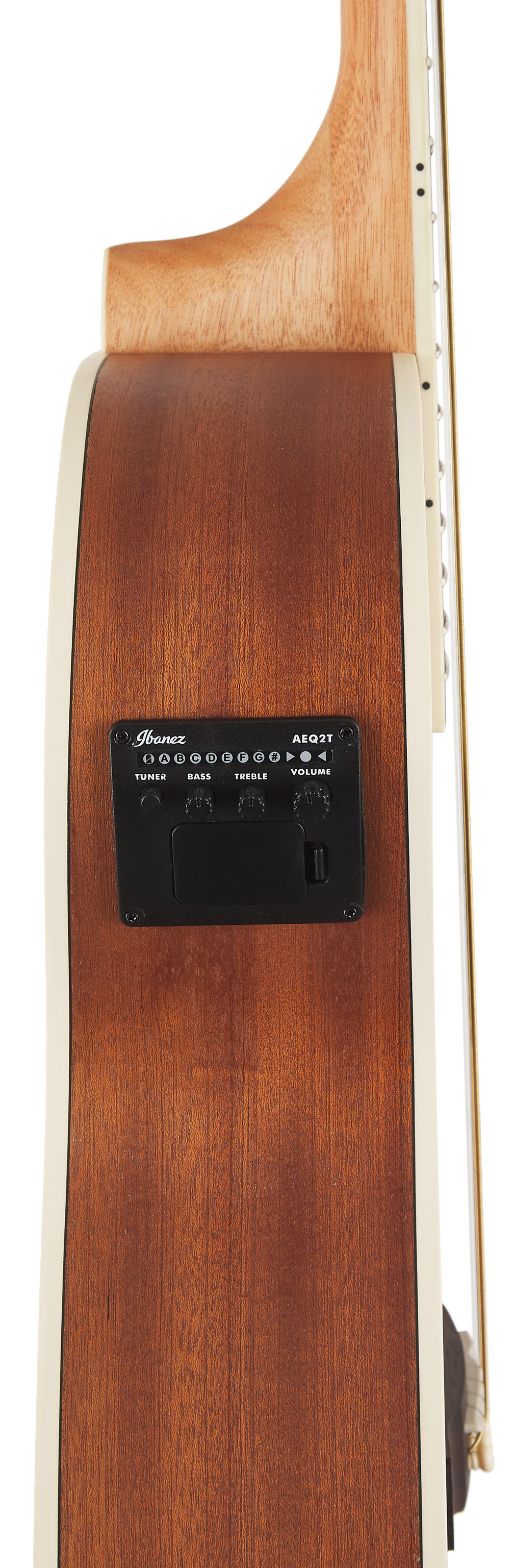 Elektroakustická gitara Séria AEG japonskej značky Ibanez ponúka cenovo dostupné modely elektroakustických gitár vybavených kvalitnou elektronikou. Sú dobrou voľbou pre úplných začiatočníkov aj skúsených hráčov, ktorí hľadajú spoľahlivú cestovnú/pracovnú gitaru na každú príležitosť. Vrstvené telo modelu AEG7MH-OPN je vyrobené z afrického sapele, dreva, ktoré sa vizuálnymi a výkonnostnými vlastnosťami podobá pravému mahagónu. Ku krku z okoumé je prilepený hmatník z fialového srdca/amarantu s 20 pražcami. Spo
