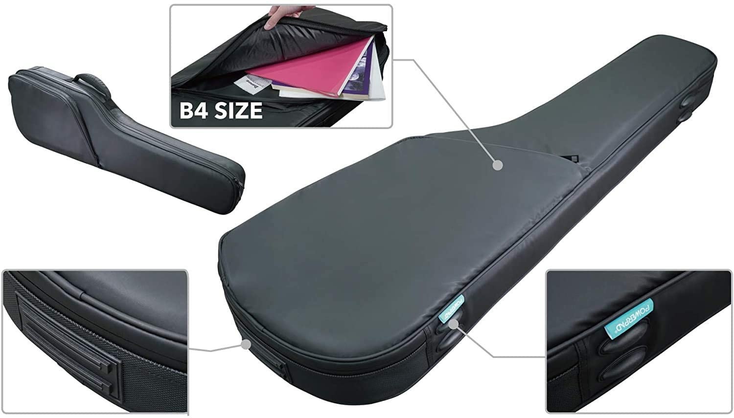 Obal na elektrickú gitaru Puzdrá radu Powerpad Ultra kombinujú štýlový a elegantný vzhľad, inteligentný dizajn a dodatočnú ochranu vášho nástroja. Vďaka až 25 mm penovému polstrovaniu sa o svoj nástroj naozaj nemusíte báť. V kritických oblastiach, ako je dno a boky, je pevnosť puzdra ešte viac zosilnená, takže vášmu nástroju nehrozí poškriabanie ani pri silnejších nárazoch. Vonkajší materiál a zipsy sú navyše odolné voči poveternostným vplyvom, takže vás na cestách neprekvapí dážď ani prach. Samozrejmosťou
