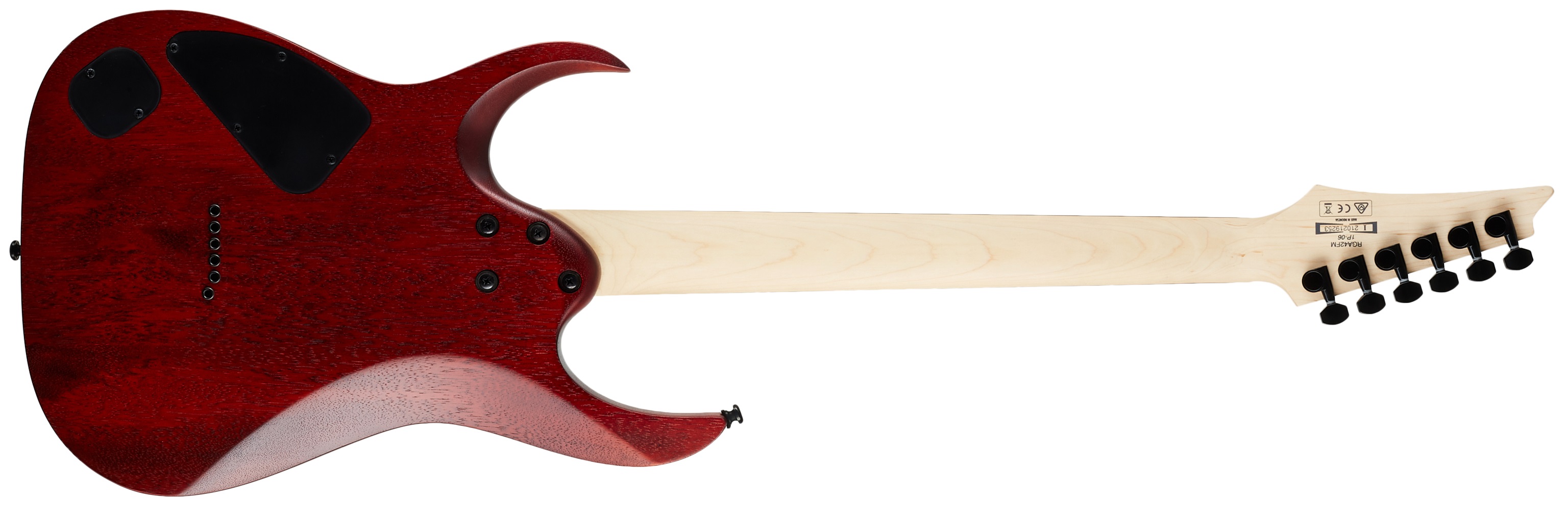 Elektrická gitara Séria RGA japonskej značky Ibanez vychádza zo špecifík známej série RG, pričom pridané A v názve označuje oblúkovú vrchnú dosku. Ploššie rýchle krky, nižšia hmotnosť a výrazné výrezy so štýlovo zašpicatenými rohmi pre ľahký pohyb po celej ploche hmatníka sú dôvodom mimoriadnej obľúbenosti týchto nástrojov medzi rockovými a metalovými gitaristami. Telo modelu RGA42FM-TGF je vyrobené z meranti a efektnej dyhy z fládrovaného javora. K rýchlemu javorovému krku s profilom Wizard III je prilepen