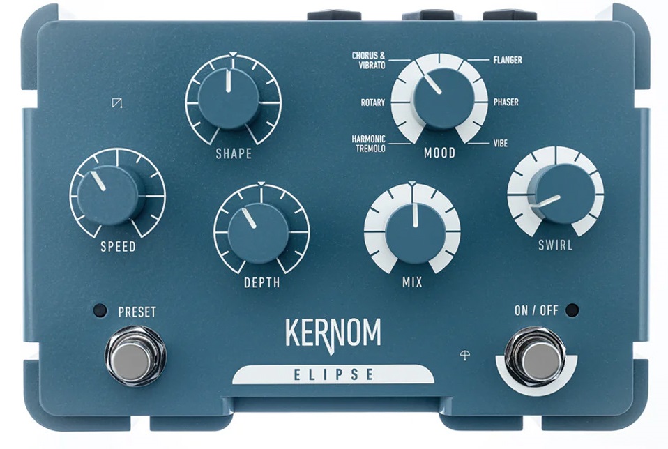 Gitarový efekt Gitarový efekt Elipse od francúzskej spoločnosti Kernom bol navrhnutý tak, aby otvoril dvere celej škále analógových modulačných efektov. V jeho kompaktnom tele sa ukrýva celkom šesť typov modulácie (Harmonic Tremolo, Rotary, Chorus & Vibrato, Flanger, Phaser, Vibe), medzi ktorými môžete plynule prepínať a vytvárať tak jedinečné hybridné tóny balansujúce na hranici dvoch efektov. Ovládací panel ponúka dva nožný spínače (jeden na uloženie a vyvolanie prese