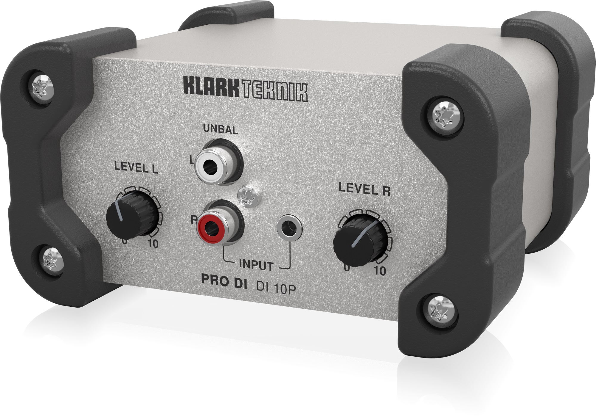 DI box KLARK TEKNIK DI 10P je pasívny DI box so stereo vstupom 3,5 mm TRS a konektormi RCA, výstupom XLR, nastaviteľnou úrovňou signálu oboch kanálov, transformátormi Midas pre maximálnu integritu signálu, prepínateľným uzemnením a hliníkovým šasi.