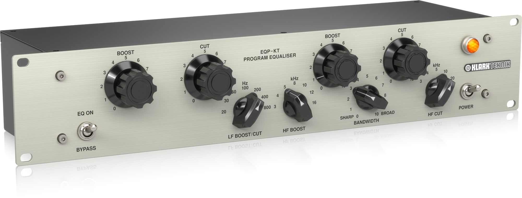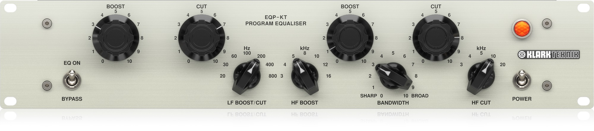 Ekvalizér Klark Teknik EQP-KT je klasický lampový jednokanálový ekvalizér s prepínateľnou voľbou frekvencie, variabilnou šírkou pásma a vlastnými transformátormi Midas. Už na prvý pohľad je jasné, že ide o repliku legendárneho ekvalizéra Pultec EQP-1A, ktorého topológia a zvuk sú inšpiráciou a nepostrádateľným štúdiovým nástrojom pre mnohých zvukových inžinierov a producentov už viac ako pol storočia. EQP-KT poskytuje klasickú flexibilitu Pultec, ktorú v bežnom ekvalizéri n