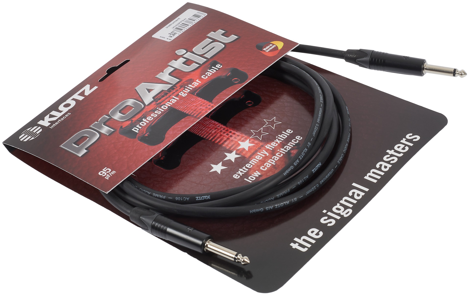 Nástrojový kábel Nástrojové káble Klotz zo série Pro Artist ponúkajú kombináciu verného prenosu signálu, vysokej flexibility a odolnosti. Vysokokvalitné medené jadro zabezpečuje teplý, bohatý zvuk s minimálnou kompresiou a nízka kapacita 95 pF/m zaručuje rýchlu odozvu a frekvenčne vyvážený tón. Kábel použite na pripojenie gitary, basgitary alebo iného monofónneho nástroja. Tento model má dva priame konektory. Jeho dĺžka je 3 metre. Nemecká spoločnosť Klotz